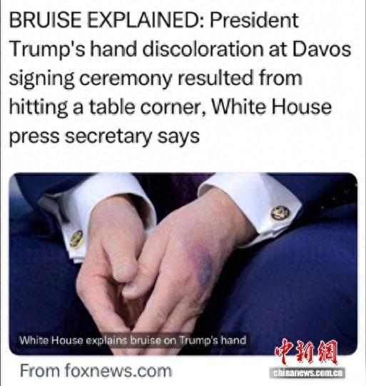 中新网北京1月24日电(沙晗汀贺劭清李嘉茵)近日,79岁的美国总统特朗普在达沃斯论坛期间,再次被发现手背出现“淤青”。