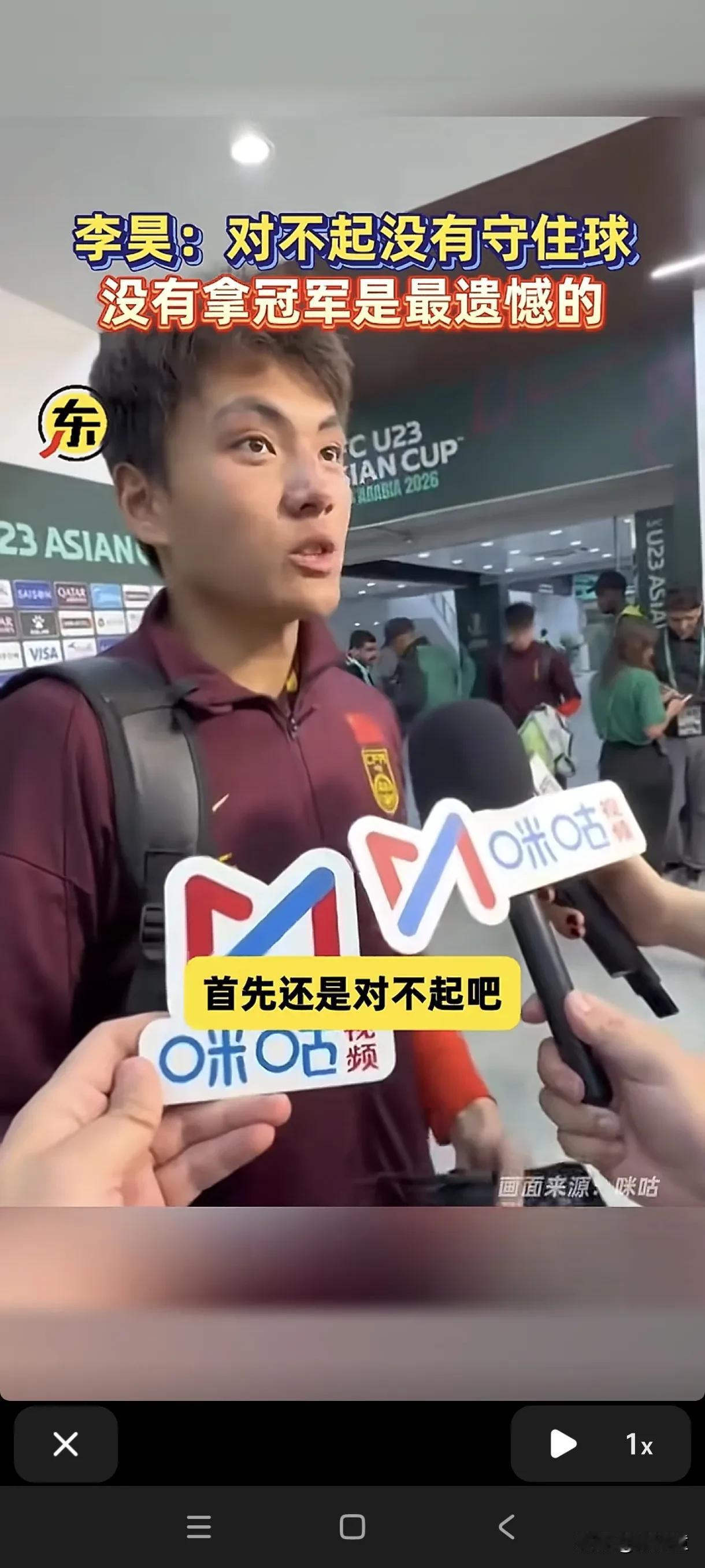 0:4输球后,李昊接受采访,让人对国足又抱有期待! 李昊是00后,他在场上的英勇,以及英姿勃发的血性,也是这次中国队进入决赛的关键! 赛场外,李昊的采访也是责任感十足,输就是输,没有虽败犹荣,不给自己借口,只拿成绩说话,足以看出他身上的荣誉感,以及责任感! 建议以后国足的选拔标准按李昊来,国足还有希望!