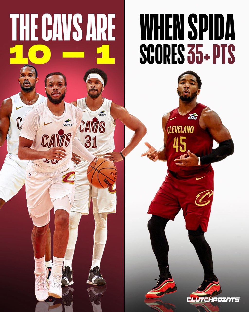 “多诺万-米切尔正在做他最擅长的事,只要他得分超过35分,骑士基本上就势不可挡,本赛季10胜1负的战绩证明了这一点。