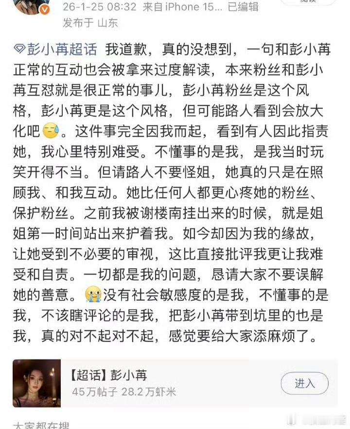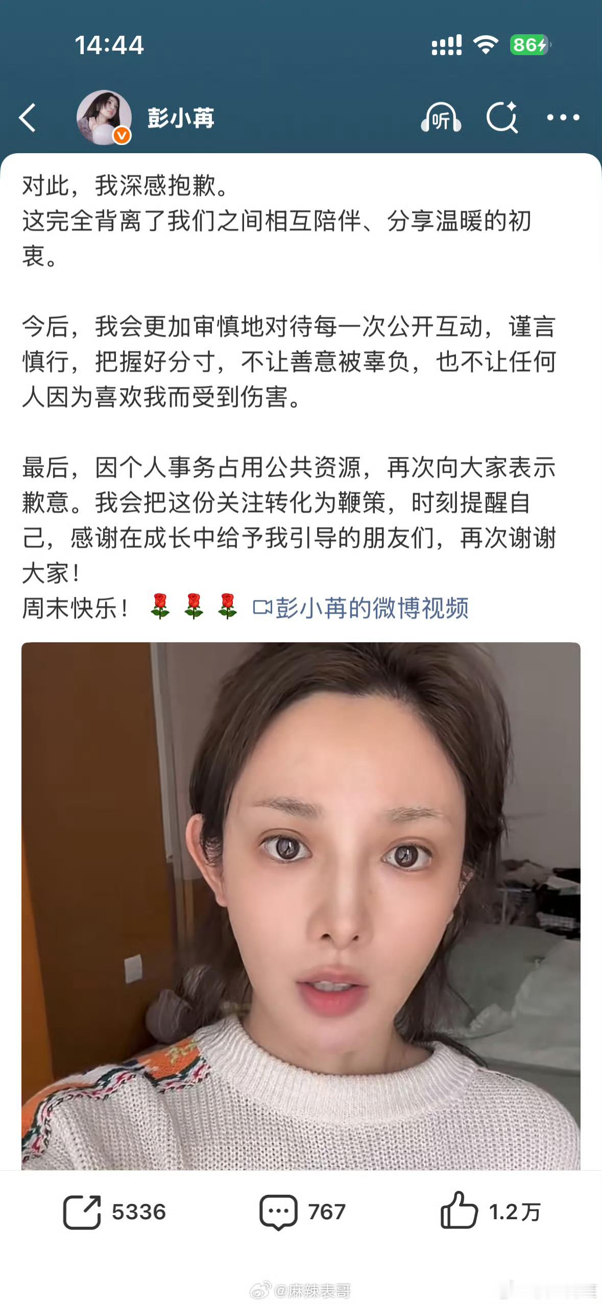 彭小苒这个道歉还是挺拉好感的彭小苒称该道歉的是我