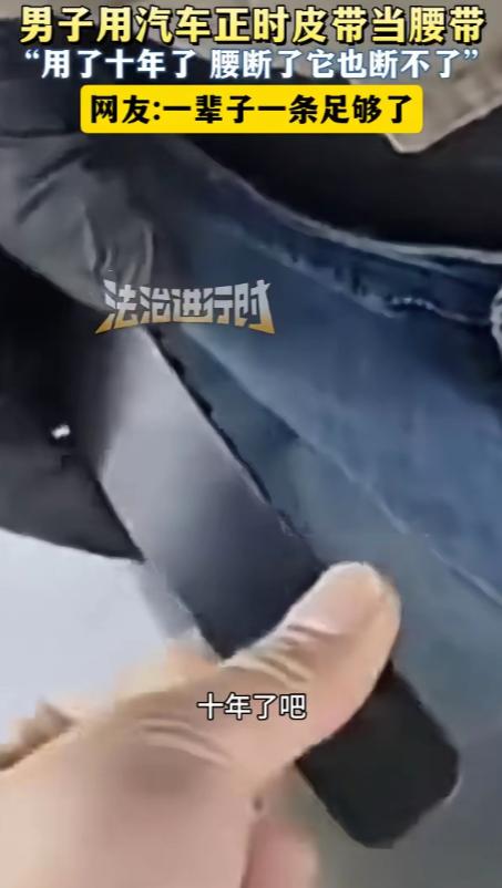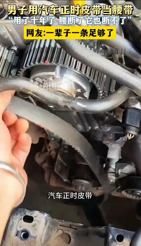 不服不行!山东,男子去汽修厂修车,发现师傅腰上的皮带很特别,就好奇问了一嘴,没想到师傅说这是汽车正时皮带,而且已经用了10年了!网友:“这玩意耐用,腰断了它也断不了!” 1月21日,山东一家汽修厂的院子里,王先生刚把车开过来保养,,视线却不经意间被一个身影勾了过去。   那是厂里的老师傅李大哥,正弯腰搬一个沉重的轮胎,腰间系着的带子看着格外扎眼。   不是常见的牛皮或者帆布材质,表面带着细密的纹路,边缘还有点微微的磨损痕迹,偏偏系在身上格外利落。   王先生越看越觉得这带子的质感眼熟得很,他凑过去多看了几眼,心里的疑惑越来越重。   这带子的纹路、厚度,怎么看都跟汽车发动机里的正时皮带一模一样,但是正时皮带是发动机的核心部件,怎么可能有人拿来当腰带用。   李大哥搬完轮胎,擦了擦额头的汗,注意到王先生的目光,憨厚地笑了笑。   王先生实在憋不住好奇心,开口问了一句,这一问直接印证了他的猜测。   李大哥点头说,这确实就是一根正时皮带,而且已经在他腰上系了整整十年。   这个答案让王先生彻底愣住了,正时皮带这东西负责协调发动机气门和活塞的运动,一旦在行驶中断裂,发动机很可能直接报废。   这么金贵的部件,居然被改成了腰带,还一用就是十年,实在超出了他的想象。   李大哥看出了他的惊讶,脸上露出几分得意的神色,他伸手摸了摸腰间的皮带,眼神里带着点怀念的味道。   这根皮带是十年前从一辆报废老车上拆下来的,他检查零件的时候发现,这条正时皮带居然一点裂纹都没有,韧性还特别好。   干了一辈子汽修,李大哥对各种零件的材质门儿清,看着这么好的东西扔了可惜,就找了个皮带扣,简单改了改,没想到这一改,就成了他十年的随身物件。   李大哥说着,还拽了拽皮带的两端,卡扣处发出清脆的声响,带子本身却纹丝不动。   这十年里,他钻过无数次车底,抬过不知道多少个发动机零件,重活累活从没落下,这条皮带愣是没掉过一次链子。   不像以前买的那些名牌腰带,有的用了半年就变形松垮,有的甚至直接断成两截,这条正时皮带,越用越结实。   李大哥拍着皮带,语气里满是骄傲,说就算自己的腰累垮了,这皮带也断不了。   听到这话,王先生瞬间就明白了。   正时皮带的材质本就不是普通腰带能比的,大多是氢化丁腈橡胶或者氯丁橡胶制成,里面还嵌着高强度纤维和金属丝,耐高温、抗拉伸、耐磨损的性能都是工业级的。   厂家原本就说这东西能在发动机里跑十万公里,拿来系在腰上,自然是绰绰有余。   后来王先生把这条皮带的照片发到了网上,没想到一下子就火了。   有人开玩笑说,明天就去把老板A8的正时皮带拆下来,也给自己改一条腰带。   有人分享起老家的故事,说老一辈人会用火车轮胎皮做鞋子,一双鞋能穿几十年,大家都叫它“辈子鞋”,跟这条皮带算是异曲同工。   还有个厨师网友凑热闹,说自己用猪大肠当腰带,应该也不算过分。   生活里的小惊喜,往往就藏在这些意想不到的地方。   谁能想到,汽车上的一个废旧零件,摇身一变就能成为耐用十年的腰带。   这种跳出常规思路的小创意,不需要花多少钱,却能实实在在解决问题,还能带来满满的成就感。   李大哥的这条正时皮带腰带,就是最好的例子。   它不是什么值钱的稀罕物,却因为这份巧思,成了大家眼中的“硬核好物”。   而这份藏在腰间的小智慧,也让我们看到了物尽其用的乐趣,看到了平凡日子里,那些不经意间冒出来的小惊喜。