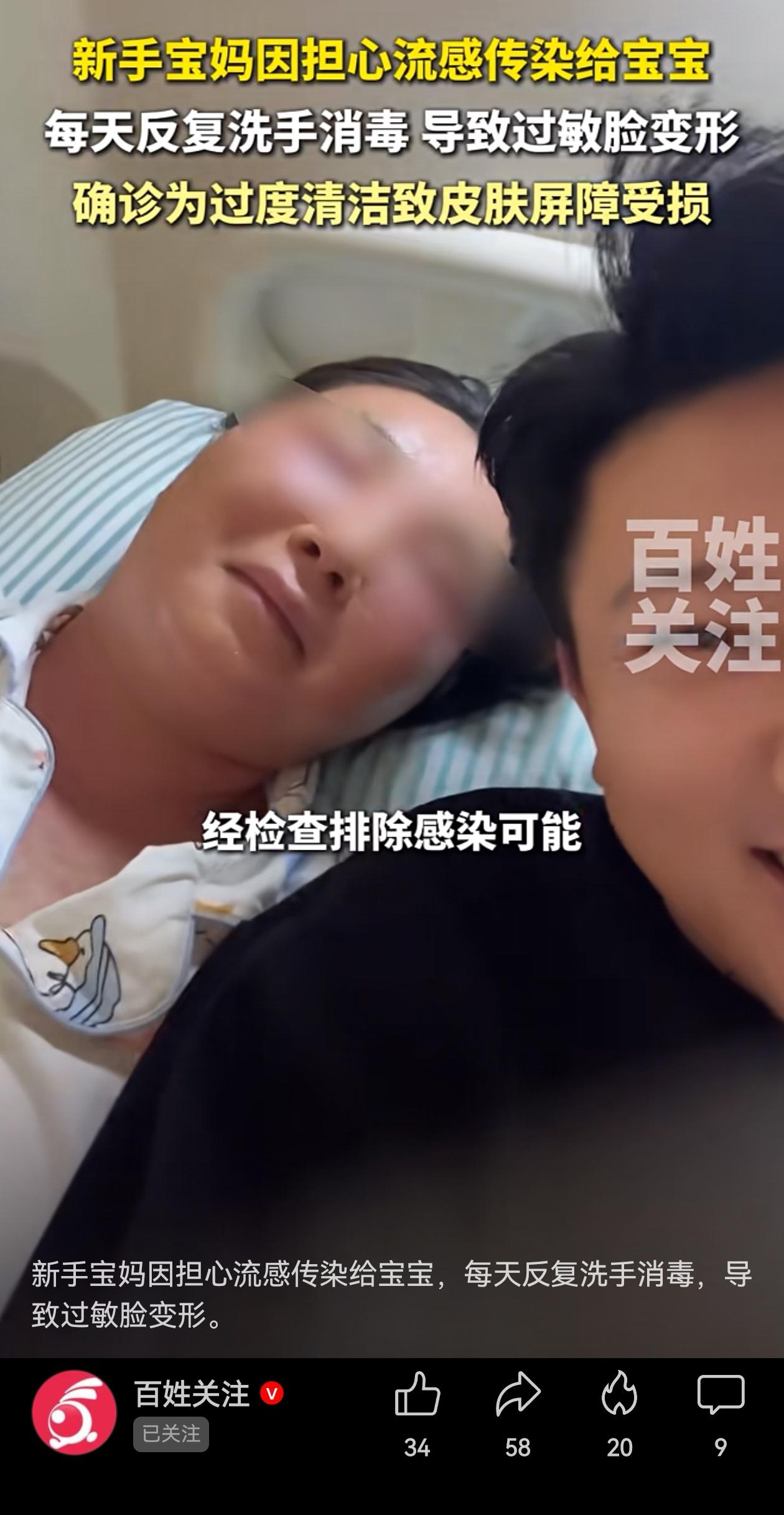 干净惹的祸?江苏的一位新手妈妈脸严重红肿近乎“变形”,就因为太干净! 江苏的这位新妈妈,担心流感病毒感染小婴儿,在接触任何非婴儿用品后都会立即洗手,甚至停用了所有护肤品,只为确保绝对“洁净”。 这种高频次、高强度的清洁模式,却让自己的皮肤承受了无法修复的损伤。 脸上肿到“变形”,身上冒出连片的小疹子和水疱。脸两天就完全肿起来…… 这位妈妈的故事,让人心疼啊!保护宝宝,不等于要让自己身处“无菌真空”。 放松一点,妈妈健康快乐,才是给宝宝最好的礼物。育儿路上,照顾好自己,才能更有力地拥抱孩子。 信息来源:百姓关注