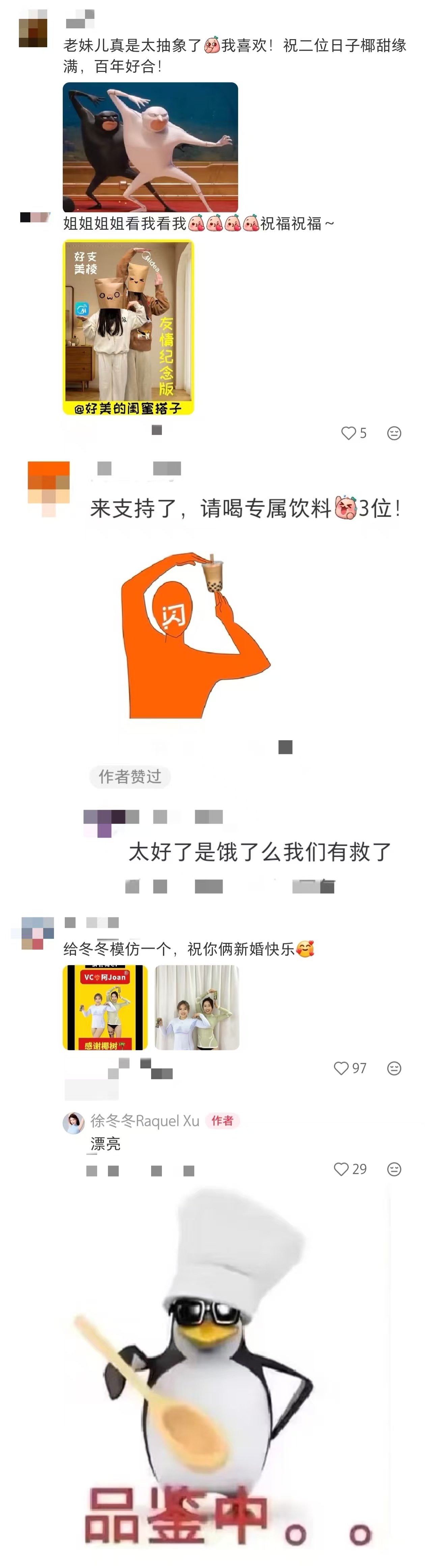 徐冬冬尹子维 快被玩坏了 属实被徐冬冬尹子维评论区的网友整笑了,俩人被玩坏了都。早生贵子系列喜庆值拉满,还有山东挖掘机、江西米粉等地域P图,整活花样多到看不过来!