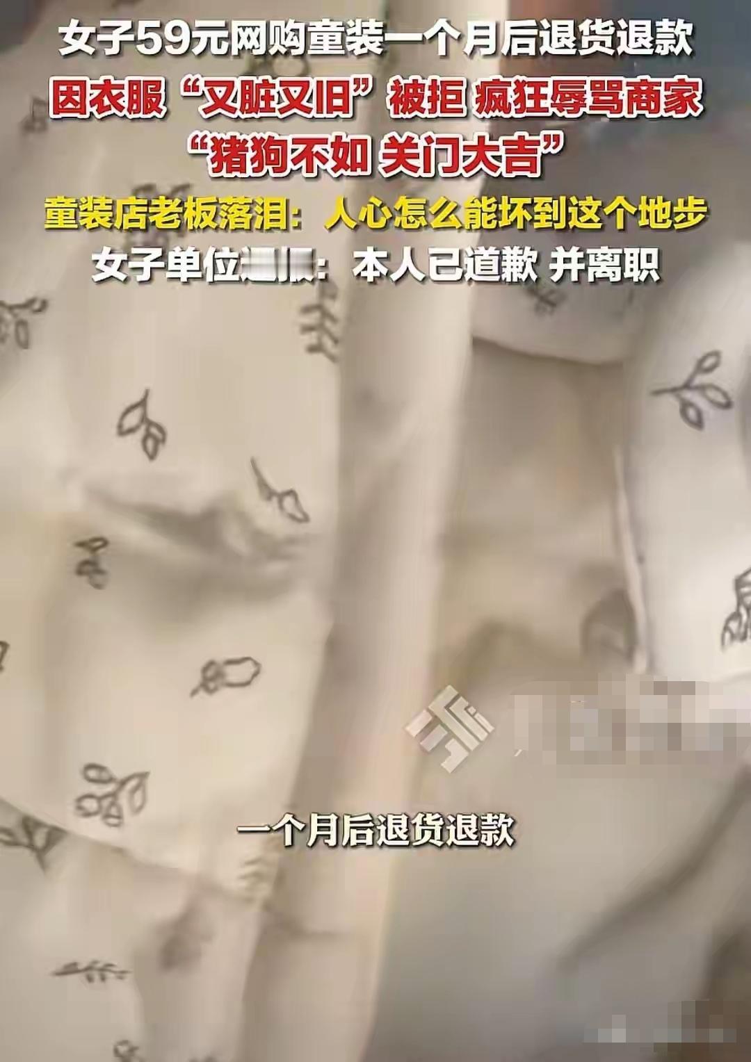 工作人员因退回脏衣服与卖家起纠纷,言语辱骂对方,言行失范引发舆论争议。该行为既违背职业素养与服务规范,更严重损害单位公众形象。涉事单位核查核实情况后,已依规对其作出通报处理,同时重申文明处事准则,严防此类行为重演,切实维护各方权益与行业良好风气。