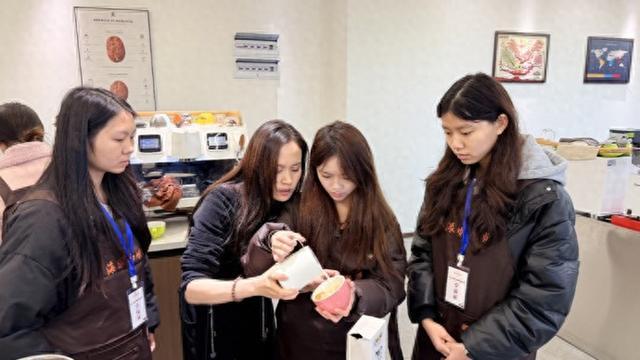 1月上旬,付俊超参加了一场网络视频面试。面试官来自上海一尺花园咖啡的经营方,他们围绕咖啡知识、服务经验、职业规划提问,并要求学员在线完成咖啡冲泡及拉花技能展示。面试过程中,学员们表现出良好的专业素养和扎实的技能功底,最后还就工作条件、发展空间等与企业进行了充分沟通,增进了双方了解。随后,面试通过的学员前往上海,在一尺花园门店开始实习就业。企业安排了一周的岗前系统培训,包括门店规章制度、企业文化、产品知识体系、客户服务流程及卫生安全标准等,确保学员快速适应工作环境。