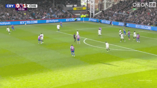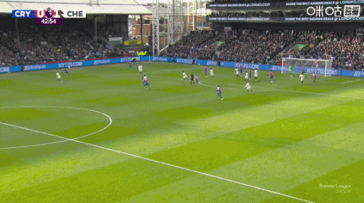 比赛第44分钟,切尔西反击机会,水晶宫后场一片开阔地,埃斯特旺长距离奔袭后右脚射门偏出。