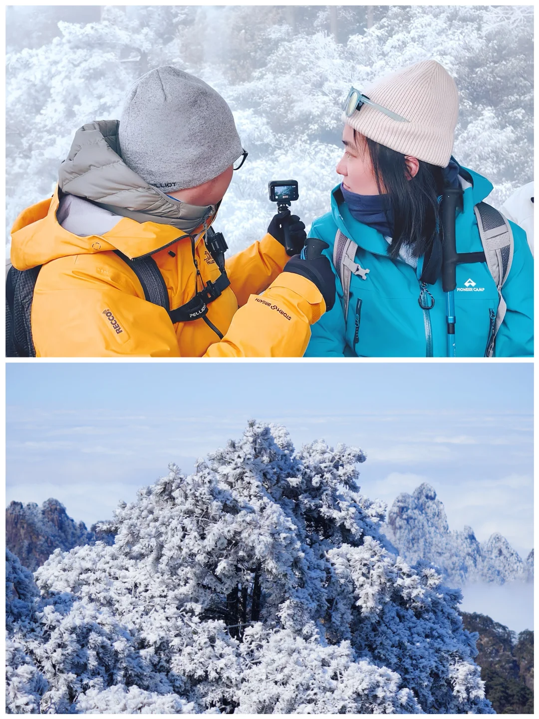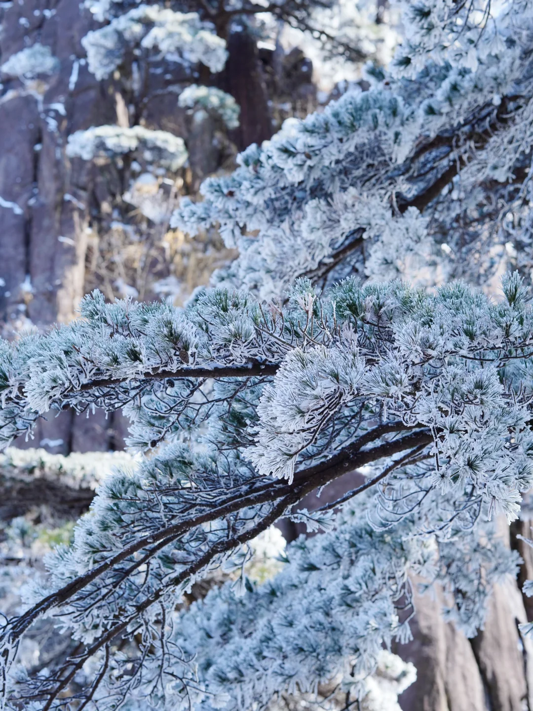 黄山气象站就在光明顶,对寒潮和降雪都能有准确的预估❄️挑准雪后的晴天上山,就能看到雾凇胜景🙌