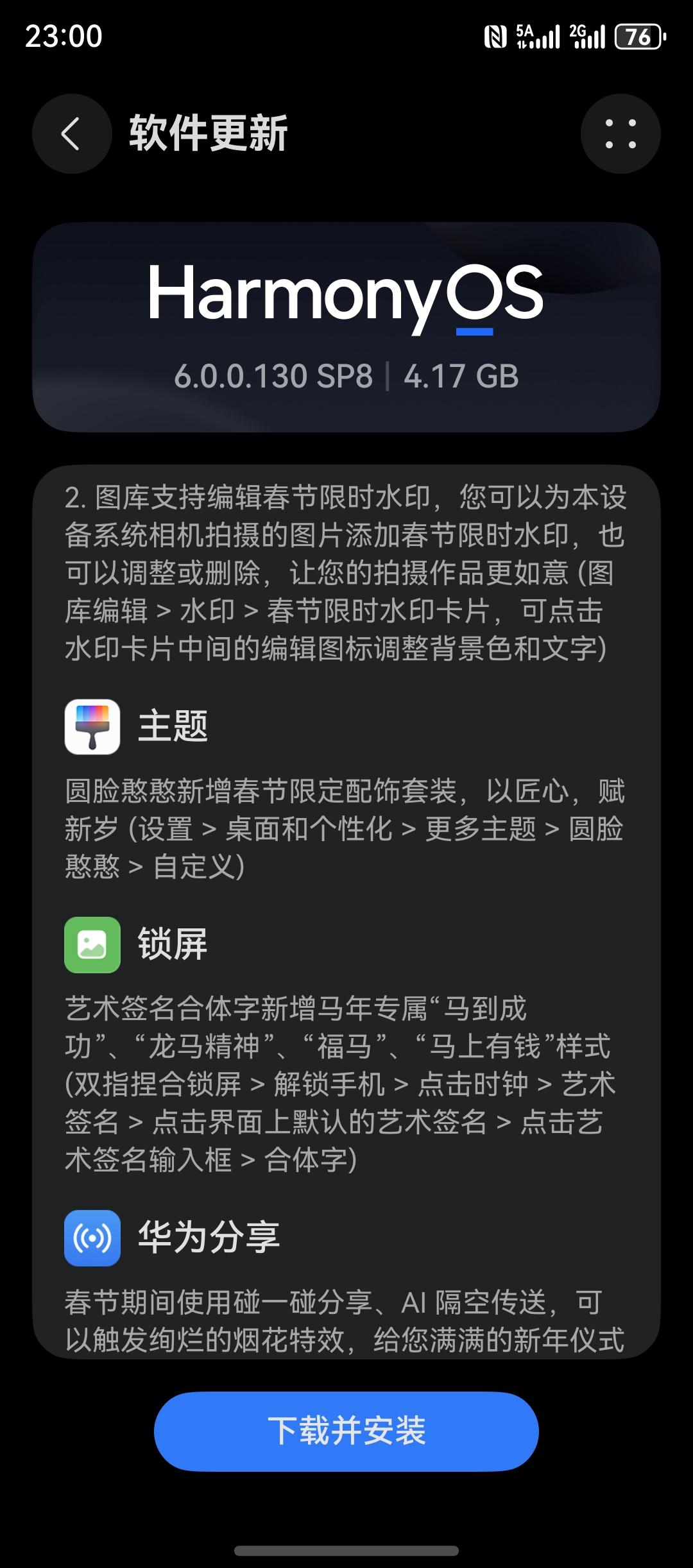 华为Mate X7收到新年版鸿蒙系统更新了,限时春节水印、春节主题、春节锁屏艺术字体都安排上了,碰一碰还有烟花特效,年味浓!大家快升级吧~ 这次OTA的版本号为6.0.0.130 SP8,升级包4.17GB。Mate 80系列的用户们应该也收到了新年版系统了吧?