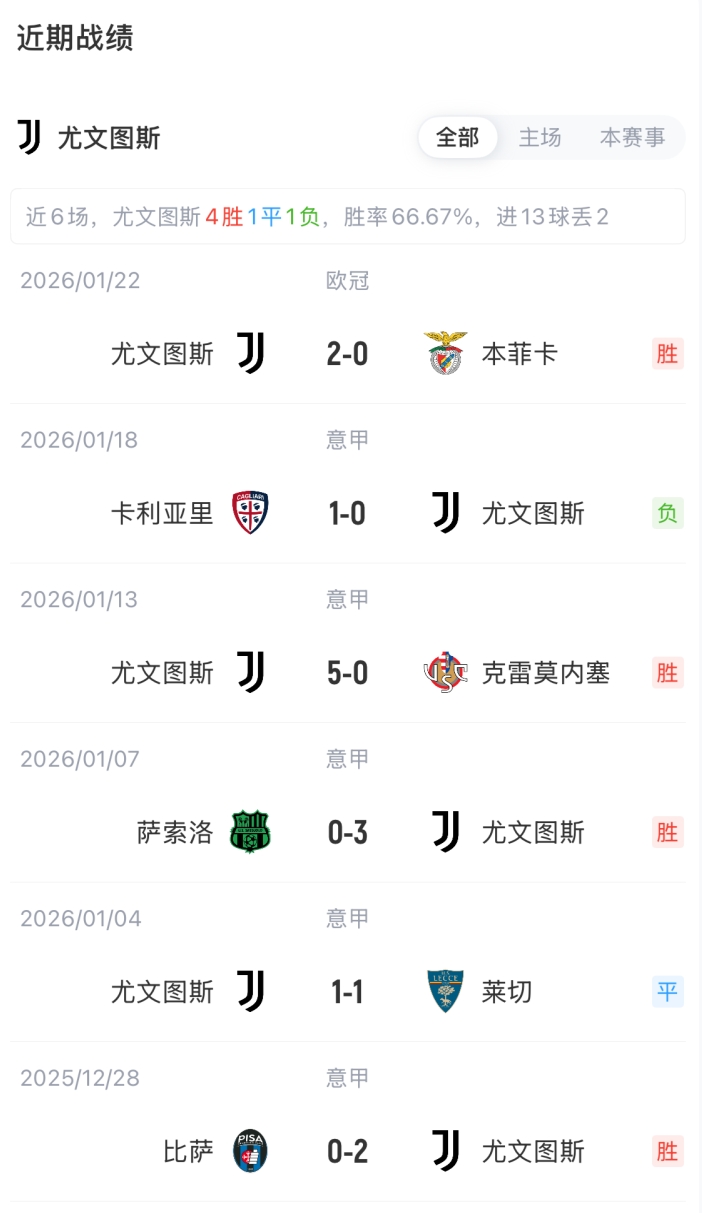 尤文首发:16-迪格雷戈里奥、15-卡卢卢、3-布雷默、6-凯利、27-坎比亚索、5-洛卡特利、19-K·图拉姆、7-孔塞桑、22-麦肯尼、10-伊尔迪兹、30-戴维