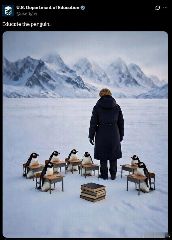 白宫晒特朗普格陵兰牵企鹅照翻车五角大楼无视众人的嘲笑,发了一张图表示要拥抱企鹅,美国教育部表示要教育企鹅来源:DOWResponse、usedgov特朗普因格陵兰岛向欧洲8国加税特朗普称将占领管理委内瑞拉
