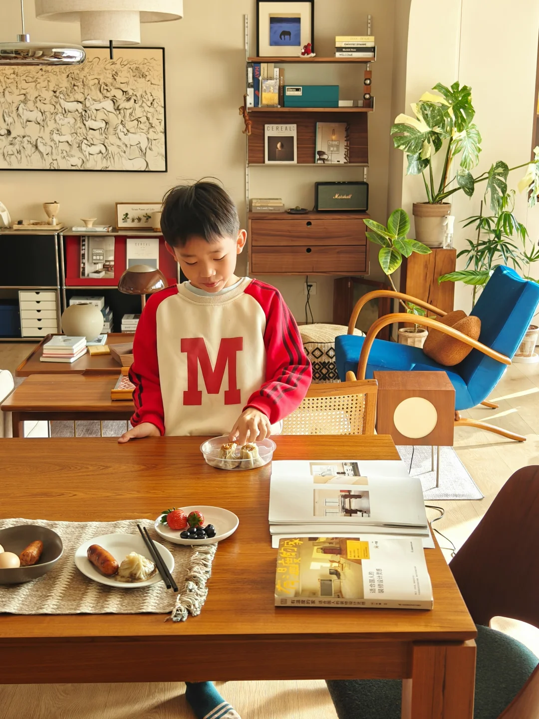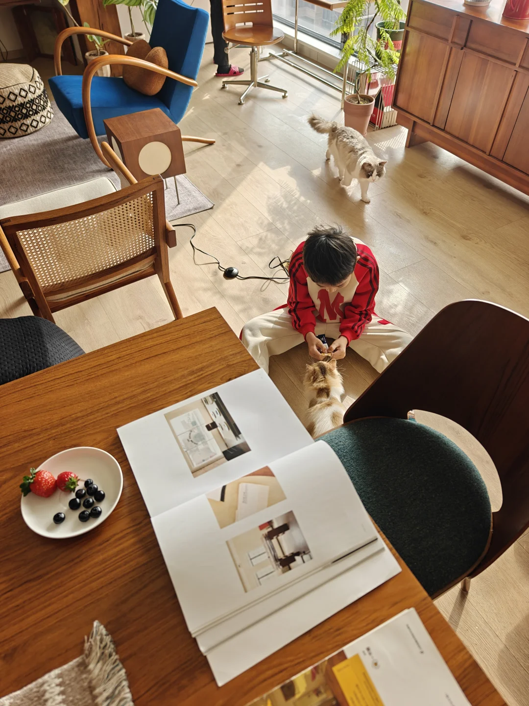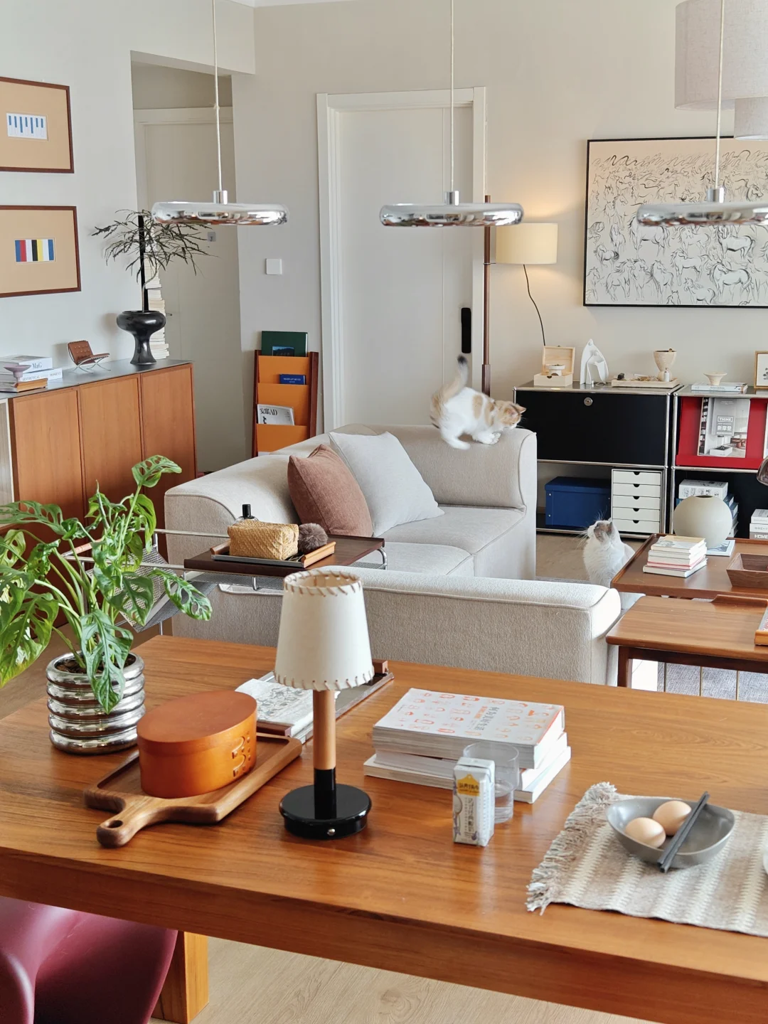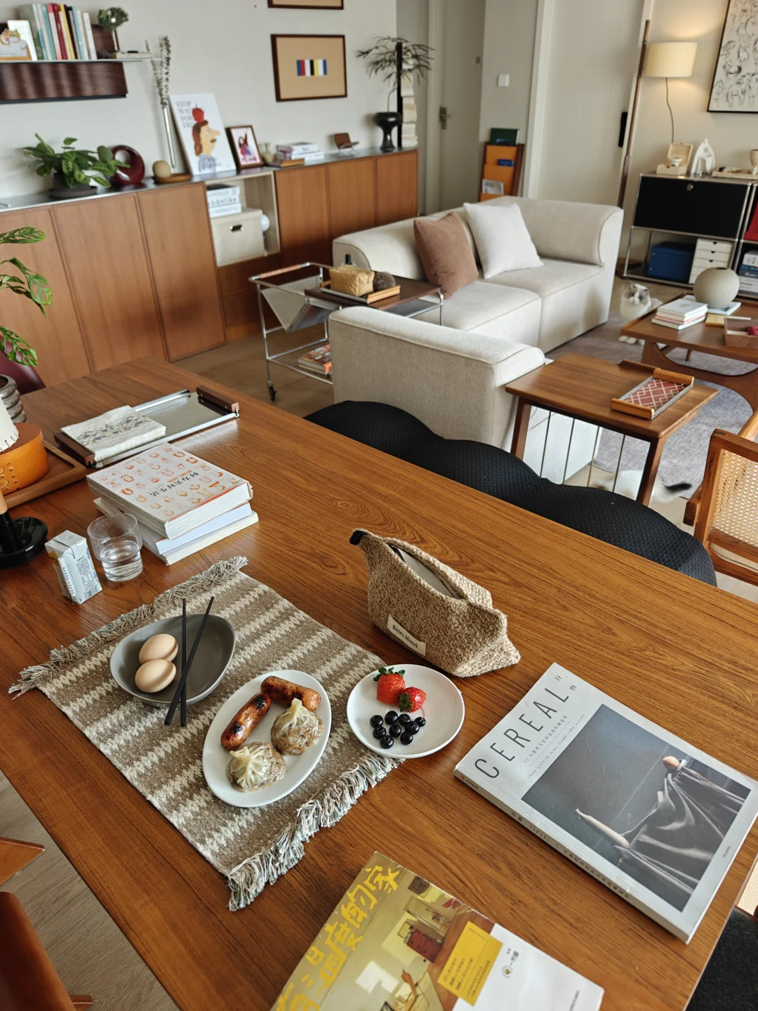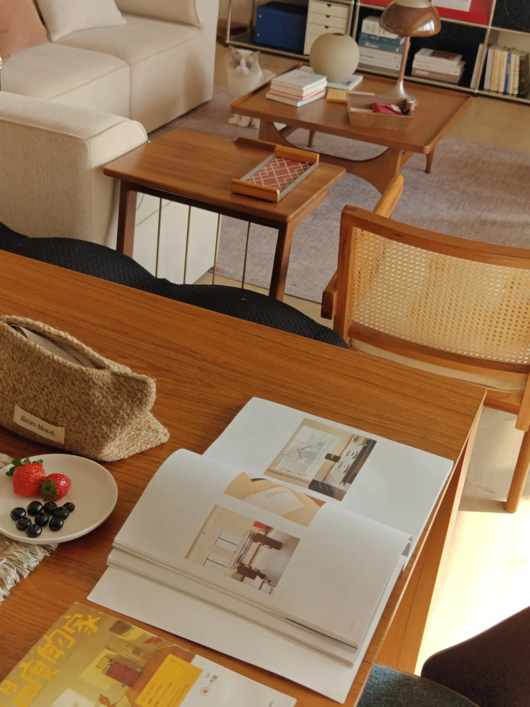 新定制的柚木墩墩桌成了心头好,