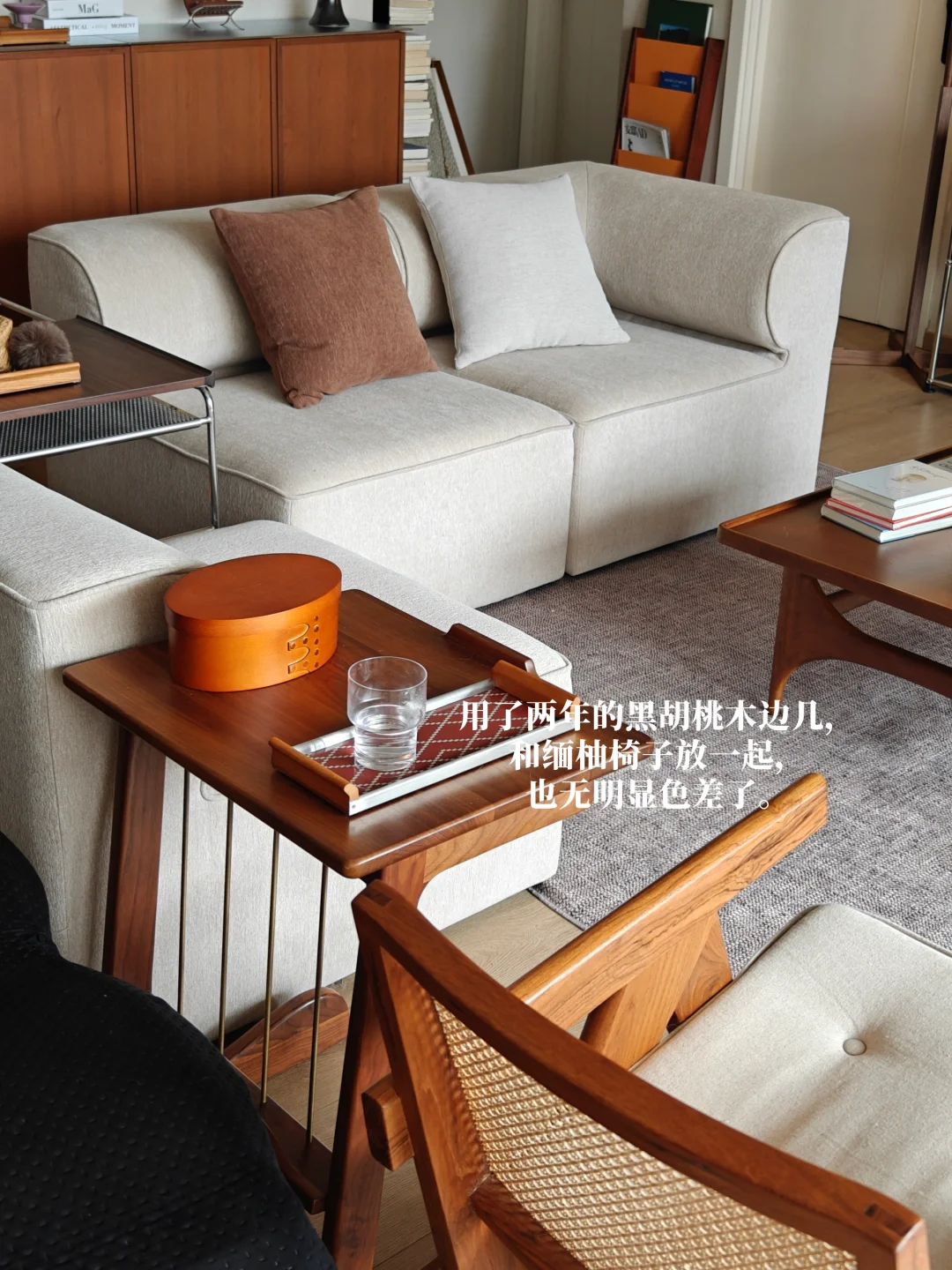 用了两年的黑胡桃木边几,