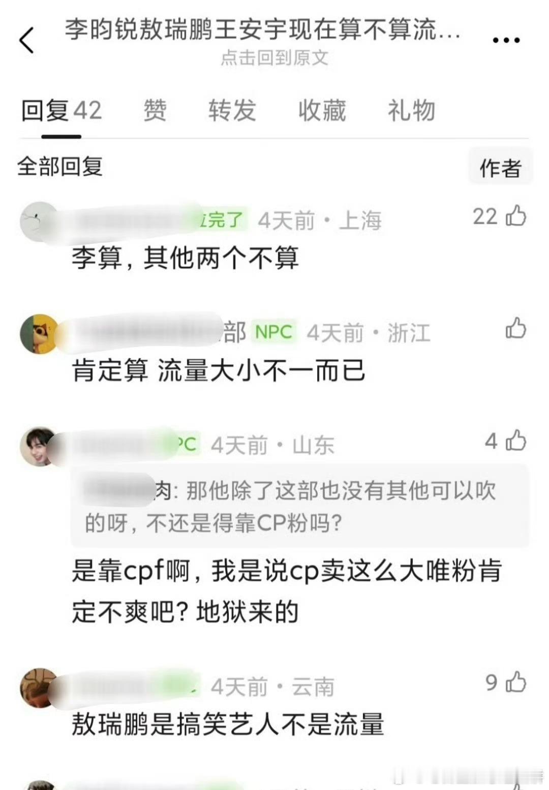 瓣组提问现在李昀锐、敖瑞鹏、王安宇算不算流量生