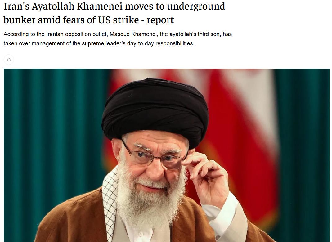据《耶路撒冷邮报》报道,伊朗最高领袖阿亚图拉·阿里·哈梅内伊在高级安全和军方官员警告美国袭击可能性增加后,转移到德黑兰一个包含一系列隧道的加固地下避难所。据伊朗反对派媒体报道,阿亚图拉的第三子马苏德·哈梅内伊已接管最高领袖的日常职责管理,并作为与政权政府行政部门沟通的主要渠道。伊朗评估美国攻击的可能性增加,此前美国总统唐纳德·特朗普周五表示美国舰船正驶向该国附近水域。