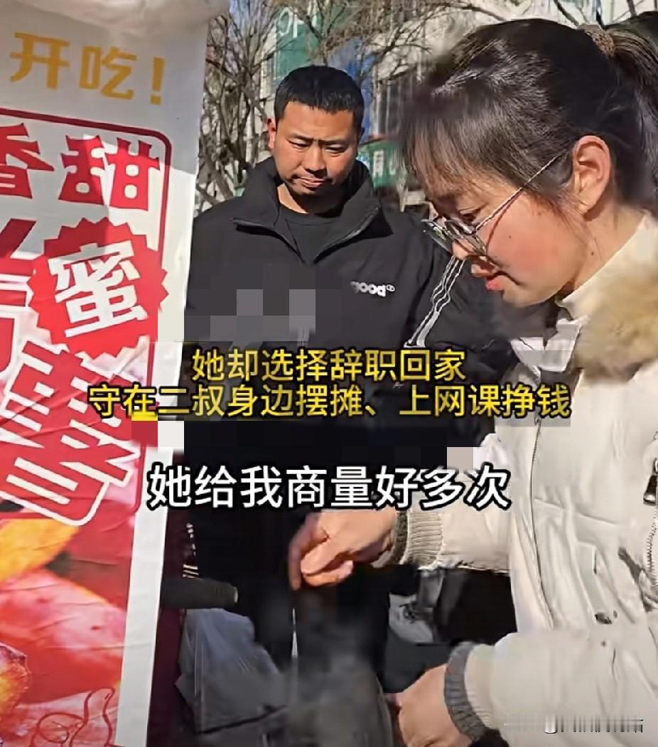百善孝为先!女孩十岁父亲去世,盲人二叔收留姐弟17年!女孩放弃月薪八九千的体面工作,守着二叔摆摊谋生! 在河南驻马店那个寒风凛冽的街头,一双正在熟练整理杂货的手上,这双手的主人叫雷甜甜。 如果不说破,你很难想象,就在几个月前,这双手还在私立高中的黑板上书写板书,月底会准时接过那张写着8000到9000元金额的工资条。 在2026年1月的这个冬日,她不再是那个坐在宽敞办公室里的雷老师,而是街头那个蹲在盲人老头身边的“引路人”。 在旁人眼里,这是一次惨痛的“阶层坠落”,好不容易考上河南师范大学,跳出了农门,怎么又一头扎回了土里,干起了这风吹日晒的营生? 但在雷甜甜看来,这才是真正的“归位”,你看那个坐在马扎上的盲人,那是她的二叔。 面对镜头,二叔那双失焦的眼睛里全是泪水,嘴里不停念叨着“怕拖累娃”,可雷甜甜脸上的笑,却比当初拿到工资条时还要踏实。 要把这个账算得清清楚楚,我们得把时间轴往回拨17年,那时候雷甜甜才10岁,父亲在那年冬天因病离世,母亲为了活命被迫外出务工,这个家实质上已经散了。 所有的亲戚都像躲瘟神一样避之不及,毕竟在那个年代,那是两张只吃饭不干活的嘴,只有一个人摸索着走了过来——就是这个盲人二叔。 当年的二叔三十出头,这本身就是一个拿着“地狱剧本”的人,双目失明,还要独自拉扯两个智商只有六七岁的儿子。 他的“资产负债表”早就崩盘了,没有任何理由再接收两个孤儿,但这世上的事,有时候就是没法用简单的利弊来计算的。 二叔一句话没多说,用那根探路的竹竿,把姐弟俩划拉到了自己的羽翼下,这一养,就是整整17年。 这17年是怎么熬过来的?这简直是一场关于生存极限的精密运算,二叔看不见,做饭常把菜炒糊,洗衣服洗得歪歪扭扭。 但在送孩子上学的路上,他手里的盲杖敲击地面的频率,从来没有乱过,那只粗糙的大手死死攥着孩子的手腕,生怕把这唯一的希望弄丢了。 为了供养这四个孩子(两个低智儿、两个孤儿),二叔把自己活成了“易耗品”,他摆摊用的小推车,硬生生磨废了三辆。 车轱辘上的橡胶皮,磨平了一层又一层,更触目惊心的是他的手,老茧叠着老茧,那是和生活肉搏留下的死皮。 17年间,他没给自己添过一件新衣,没吃过一顿像样的饭,每一分从牙缝里省下来的钱,都变成了姐弟俩的学费。 雷甜甜争气,一路考进大学,拿到了令人艳羡的高薪工作,按理说,故事到这里该是大团圆结局:侄女出人头地,接二叔进城享福。 她确实试过,但对于一个盲人来说,陌生的城市就是一座巨大的迷宫和监狱,二叔因为看不见,产生了深深的“废人恐慌”,执意要回村重操旧业。 转折点发生在那次探亲,雷甜甜站在远处,看着二叔佝偻着背,因为摸不准方向,重重地撞在台阶上,暴雨突袭时,别人都跑了,只有他因为动作慢,全身被浇得湿透,无助地站在雨里。 那一刻,雷甜甜心里的防线彻底崩了,她突然明白,人民币的转账速度,永远跑不赢二叔的衰老速度,钱能买来保姆,但买不来那一根能让他安心的“拐杖”。 于是,就有了开头那一幕,她辞掉了那份让全村人眼红的工作,回到了这个不起眼的小摊前。 这一回,角色彻底互换,曾经是盲人二叔做她的眼,在漆黑的世道里领着她走过童年。 现在,她是二叔的眼,在那个人来人往的街头,你会看到一个年轻姑娘熟练地帮二叔挡风,帮他算账,收摊回家,就像当年二叔牵着她一样。