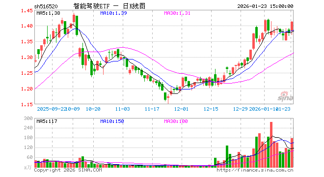 1月23日,智能驾驶ETF(516520)涨2.62%,成交额2.48亿元。当日份额增加1200.00万份,最新份额为8.74亿份,近20个交易日份额增加4.00亿份。最新资产净值计算值为12.27亿元。