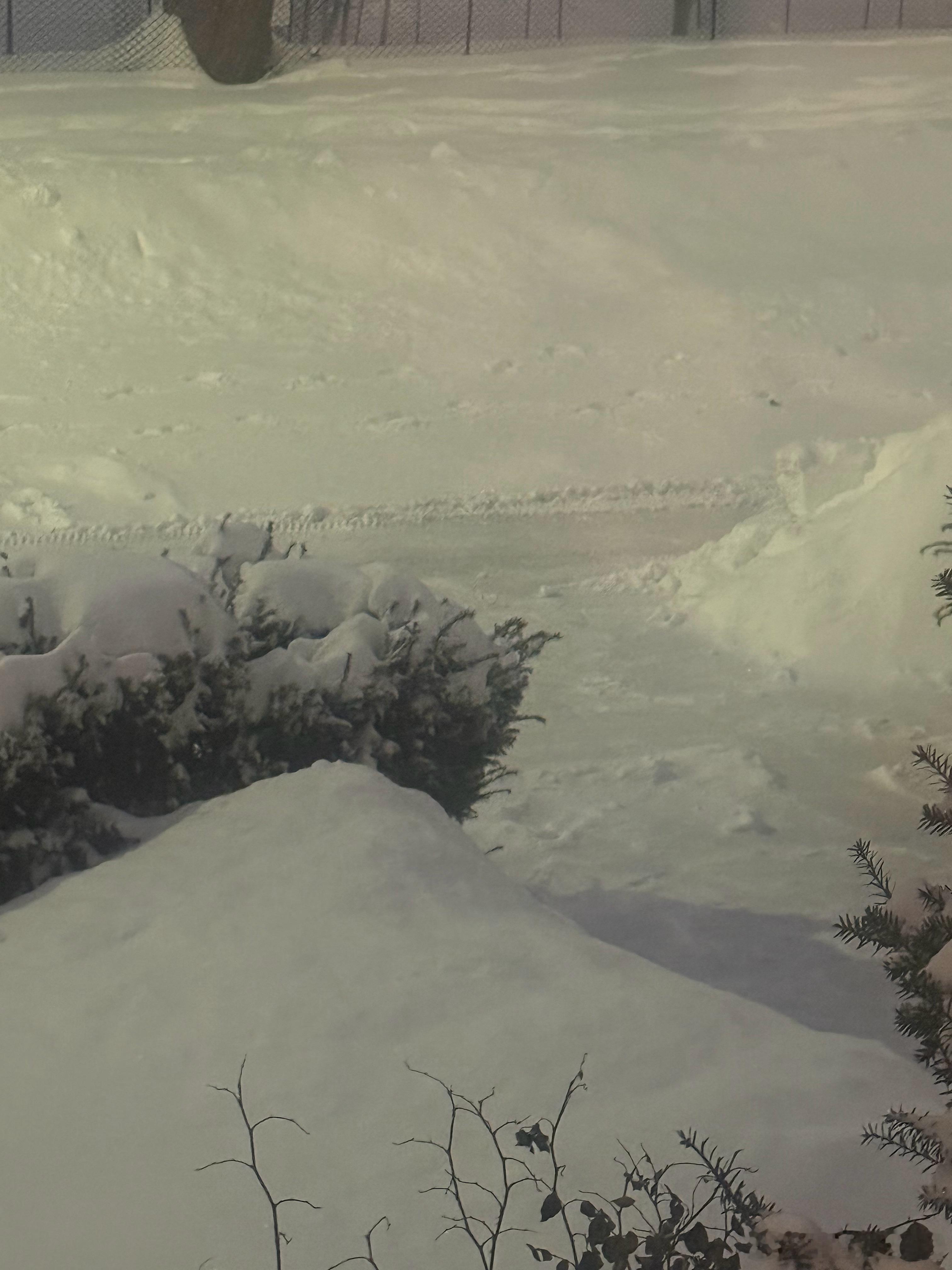 市政府的铲雪车不知道什么时候已经把路上一尺多深的雪给铲掉了,邻居蒂姆刚刚用铲雪机