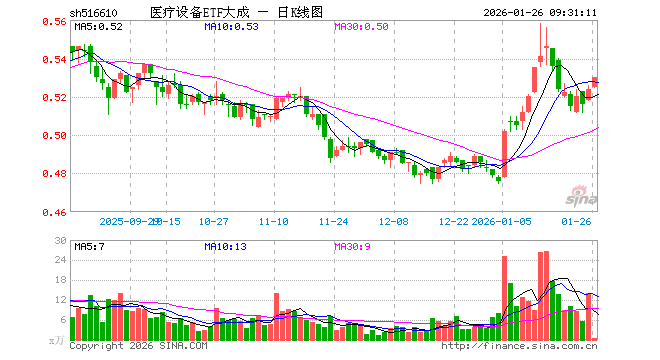 1月26日,医疗设备ETF大成(516610)开盘涨0.19%,报0.525元。医疗设备ETF大成(516610)重仓股方面,迈瑞医疗开盘涨0.19%,联影医疗涨1.33%,爱尔眼科涨0.18%,鱼跃医疗涨0.39%,新产业涨0.20%,爱美客涨0.19%,惠泰医疗涨0.02%,乐普医疗涨0.73%,福瑞医科跌0.19%,英科医疗涨3.92%。