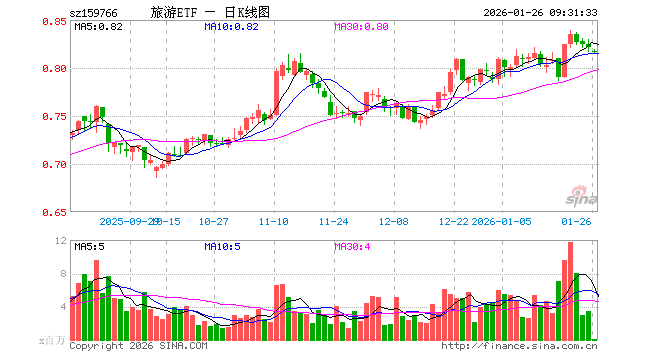 1月26日,旅游ETF(159766)开盘跌0.49%,报0.817元。旅游ETF(159766)重仓股方面,中国中免开盘跌0.19%,中国东航涨0.17%,南方航空涨0.13%,上海机场涨0.16%,中国国航跌0.23%,宋城演艺跌0.59%,海南机场涨0.00%,锦江酒店跌0.04%,春秋航空涨0.03%,首旅酒店跌0.06%。