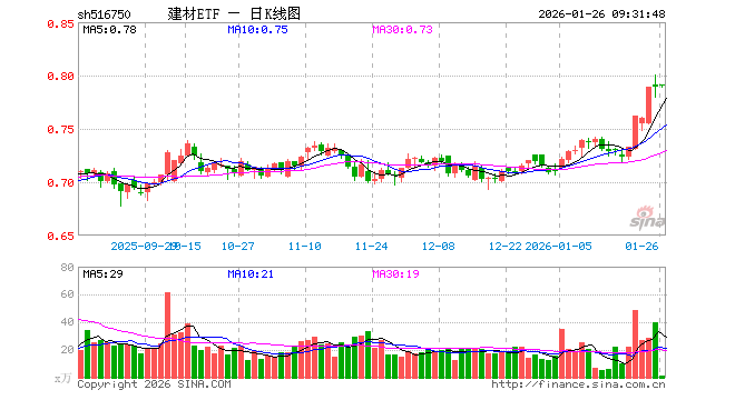 建材ETF(516750)业绩比较基准为中证全指建筑材料指数收益率,管理人为富国基金管理有限公司,基金经理为殷钦怡,成立(2021-10-28)以来回报为-20.94%,近一个月回报为11.26%。