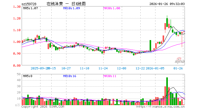 1月26日,在线消费ETF南方(159728)开盘涨0.09%,报1.081元。在线消费ETF南方(159728)重仓股方面,科大讯飞开盘涨1.62%,歌尔股份跌0.48%,巨人网络跌4.62%,蓝色光标涨0.39%,恺英网络跌0.08%,昆仑万维涨4.07%,拓维信息跌0.24%,三七互娱涨1.46%,安克创新涨0.34%,光线传媒跌0.06%。