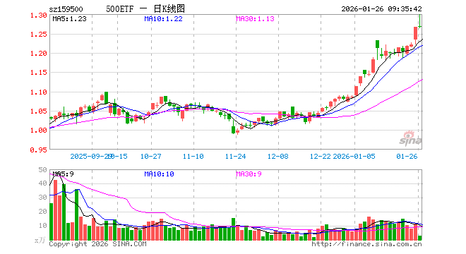 1月26日,500ETF(159500)开盘涨0.16%,报1.269元。500ETF(159500)重仓股方面,英维克开盘跌0.87%,信维通信跌3.84%,巨人网络跌4.62%,中矿资源涨0.00%,中国卫星跌1.15%,航天电子跌4.64%,先导智能涨5.99%,赤峰黄金涨4.74%,卧龙电驱涨0.13%,兴业银锡涨8.85%。