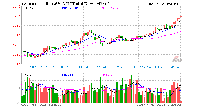 自由现金流ETF中证全指(561080)业绩比较基准为中证全指自由现金流指数收益率,管理人为华安基金管理有限公司,基金经理为许之彦、王超,成立(2025-04-23)以来回报为33.82%,近一个月回报为7.62%。