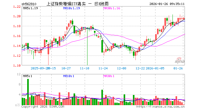 上证指数增强ETF嘉实(562810)业绩比较基准为上证综合指数收益率,管理人为嘉实基金管理有限公司,基金经理为尚可、张楠,成立(2025-03-05)以来回报为21.08%,近一个月回报为4.70%。