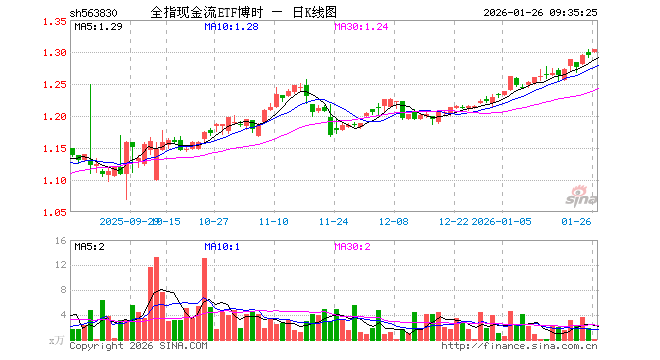 全指现金流ETF博时(563830)业绩比较基准为中证全指自由现金流指数收益率,管理人为博时基金管理有限公司,基金经理为杨振建、王萌,成立(2025-05-14)以来回报为30.75%,近一个月回报为7.76%。