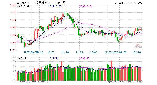 1月26日,公用事业ETF(159301)开盘涨0.00%,报0.975元。公用事业ETF(159301)重仓股方面,长江电力开盘涨0.19%,中国核电跌0.11%,三峡能源跌0.24%,国电电力涨0.21%,永泰能源涨0.00%,华能国际涨0.00%,国投电力涨0.00%,中国广核涨0.00%,上海电力涨0.84%,川投能源跌0.07%。