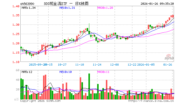 800现金流ETF(563990)业绩比较基准为中证800自由现金流指数收益率,管理人为富国基金管理有限公司,基金经理为金泽宇,成立(2025-04-16)以来回报为33.97%,近一个月回报为7.79%。