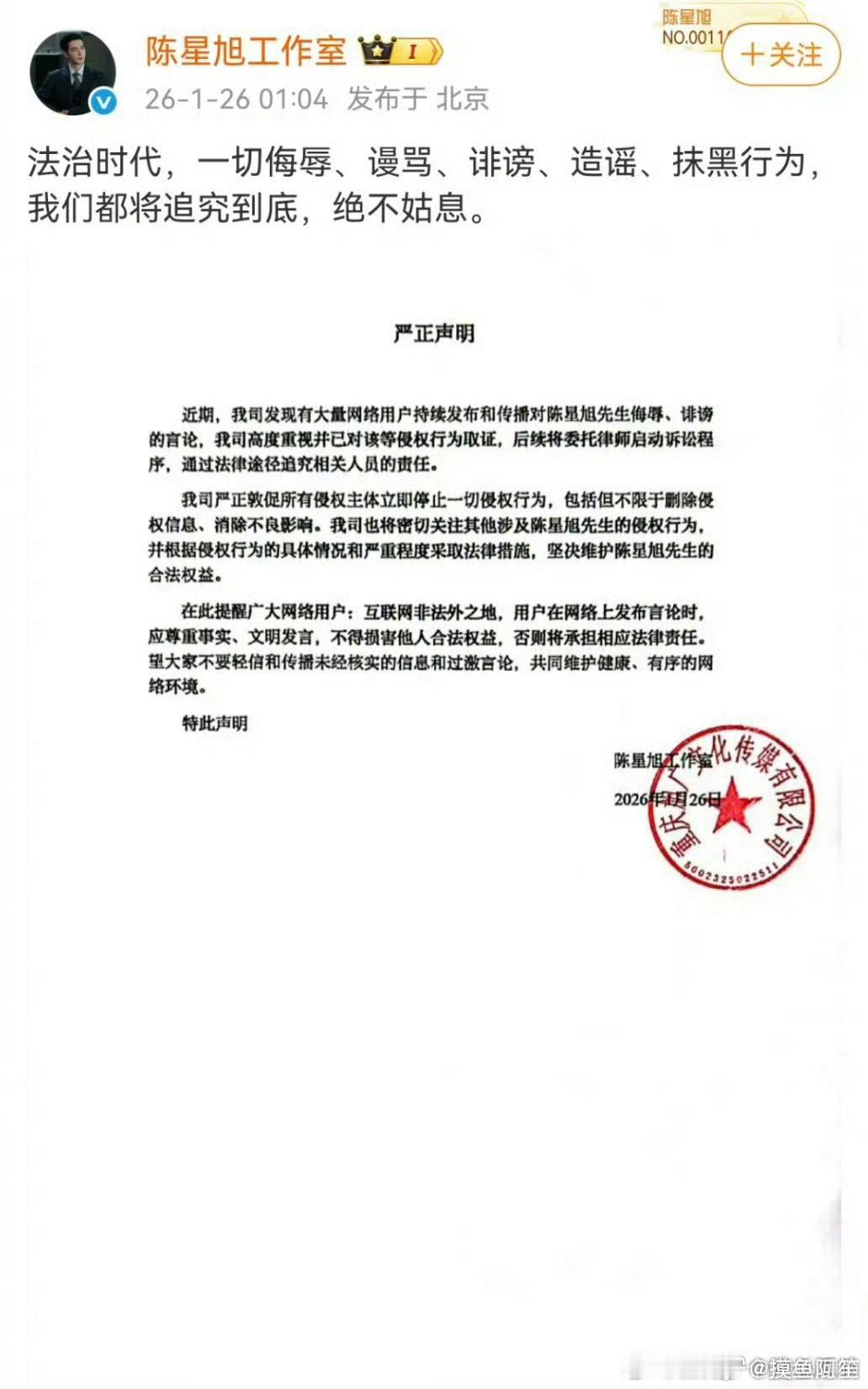 轧戏完结后,陈星旭工作室开始维权了,支持帅哥维权!