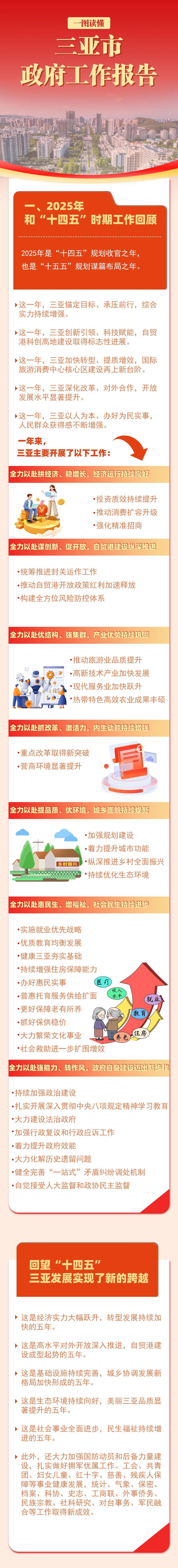 1月23日,三亚市第八届人民代表大会第七次会议在三亚开幕,市长陈希代表市政府向大会作政府工作报告。过去一年,三亚取得了哪些发展成就?今年,三亚经济社会发展主要预期目标是什么?有哪些工作安排?一起读懂2026年三亚市政府工作报告——