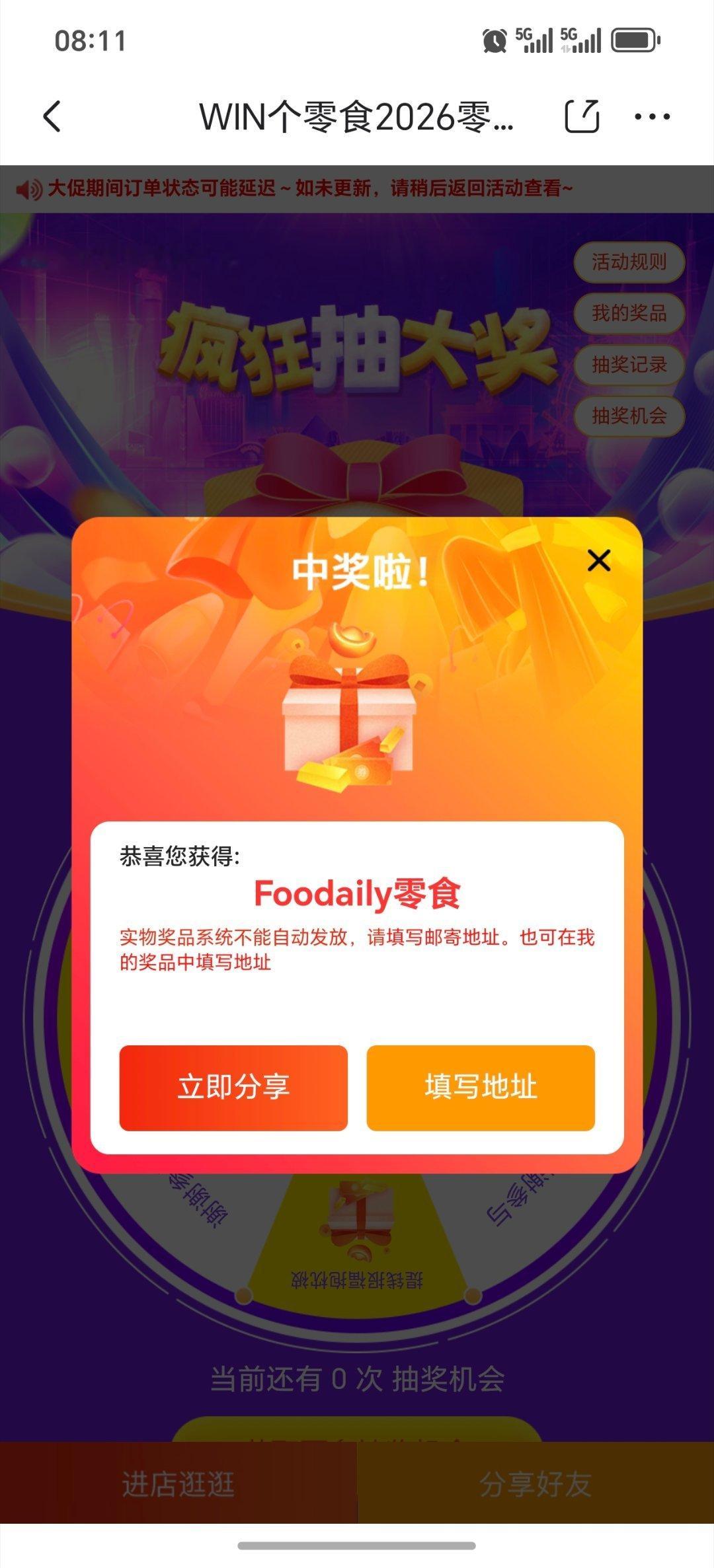 哇塞,抽中了马年荣耀各大平台送的新年零食