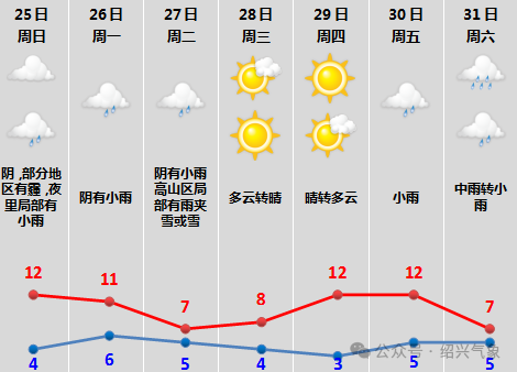 好消息是,28日至29日,绍兴将迎来短暂的多云转晴天气,这正是大家进行洗晒、户外活动的良机,请务必珍惜。