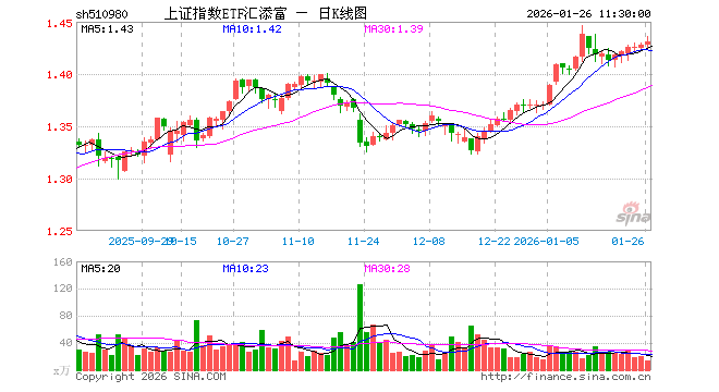 1月26日,截止午间收盘,上证指数ETF汇添富(510980)涨0.21%,报1.431元,成交额2067.74万元。上证指数ETF汇添富(510980)重仓股方面,农业银行截止午盘涨1.93%,中国银行涨1.52%,中国石油涨5.29%,贵州茅台跌0.20%,工业富联跌1.48%,中国人寿涨3.65%,招商银行涨1.47%,中国平安涨1.85%,中国神华涨3.42%,紫金矿业涨6.28%。
