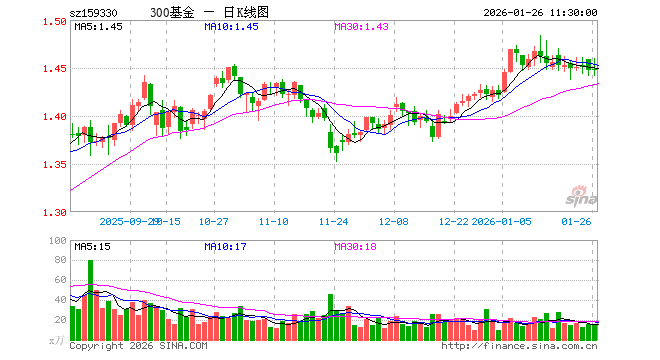 1月26日,截止午间收盘,沪深300ETF东财(159330)涨0.07%,报1.448元,成交额2296.85万元。沪深300ETF东财(159330)重仓股方面,宁德时代截止午盘跌1.13%,贵州茅台跌0.20%,中国平安涨1.85%,中际旭创涨0.38%,紫金矿业涨6.28%,招商银行涨1.47%,新易盛涨1.04%,美的集团跌0.16%,兴业银行跌0.94%,长江电力涨0.04%。