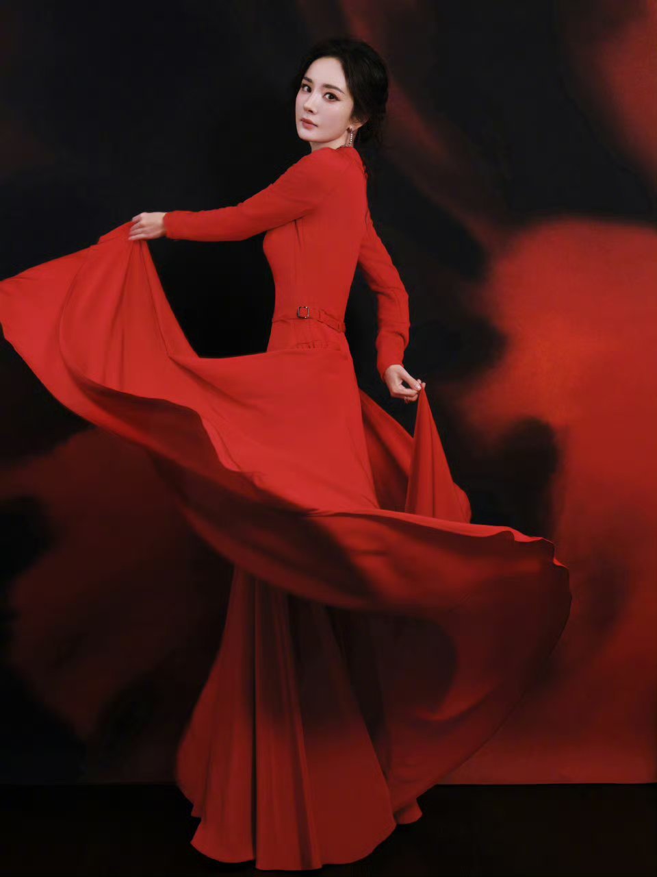 杨幂真的好适合红色花无百日红,杨幂一直红