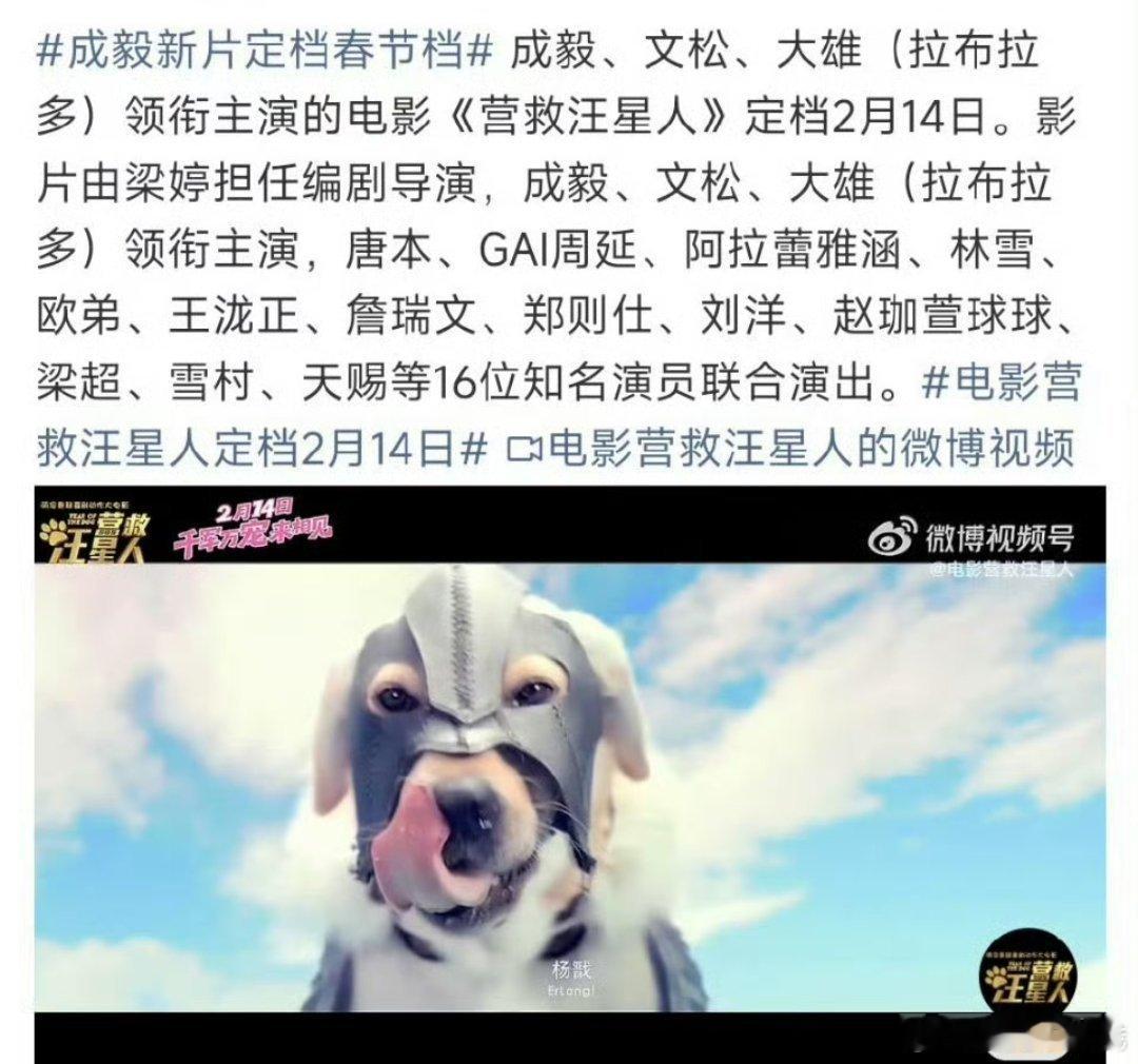 成毅主演电影《营救汪星人》定档2月14日春节档 ,你们会去看嘛