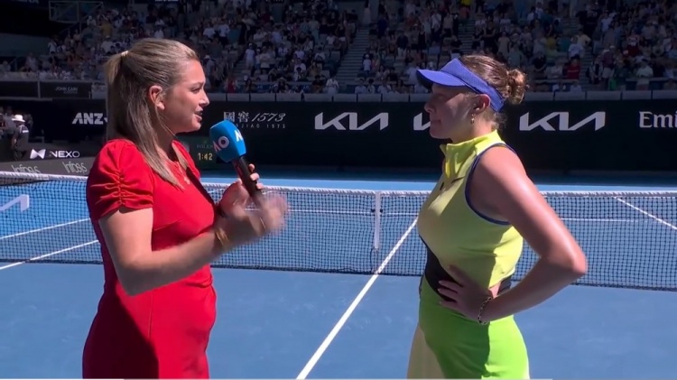 直播吧1月26日讯澳网女单第四轮,阿尼西莫娃2-0击败王欣瑜晋级8强,她赛后接受采访时称赞了中国球迷。