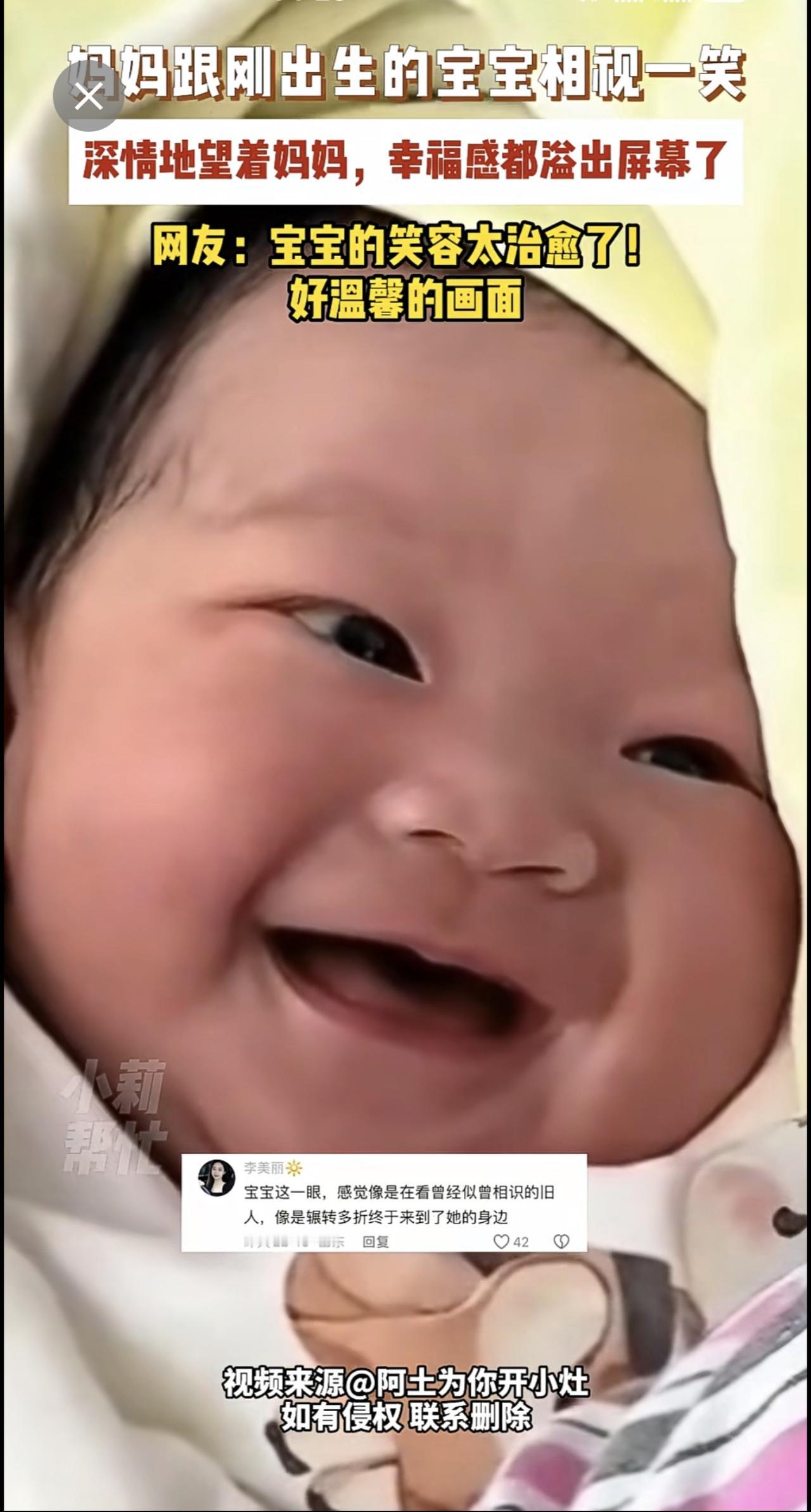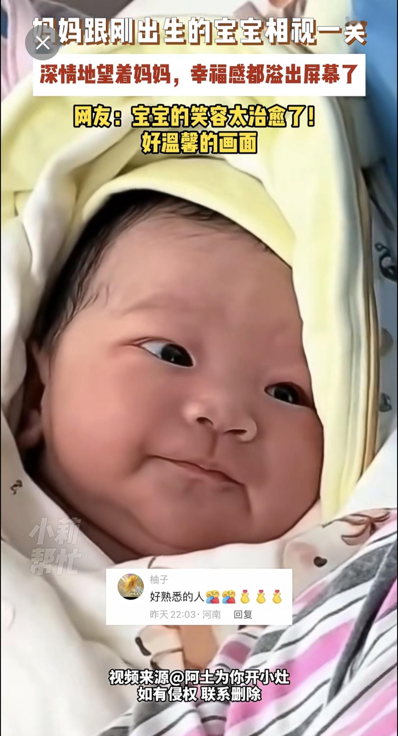 1月25日,贵州,妈妈跟刚出生的宝宝相视一笑,深情地望着妈妈,幸福感都溢出屏幕了,网友:宝宝的笑容太治愈了!好温馨的画面。