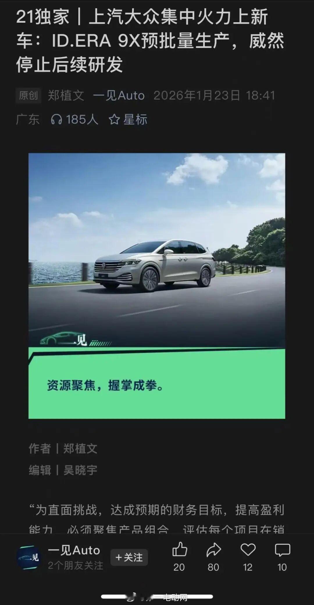 大众的2026要开始“不再犹豫,开始全面重排”的策略🔹 上汽大众据《21 汽车 · 一见 Auto》报道,2026 年将进行产品线重大调整,一年内密集推出近 7 款新能源车型:2 款 CMP 平台纯电3 款 插混2 款 增程新能源路线明显“多线并进”,不再押单一技术方向。🔹 一汽-大众昨日宣布坚持 “油电混共进 全智” 战略,2026 年开启新品大年:全年 13 款新车其中 6 款燃油车 + 7 款新能源车型几个关键信号:1️⃣ 不再回避新能源节奏问题,而是直接用“数量+节奏”回应市场2️⃣ 插混、增程被明确纳入主力方案,说明对中国市场现实选择的重新判断3️⃣ 燃油车仍有位置,但不再是“唯一答案”,而是与新能源并行过渡4️⃣ 2026 年,很可能是合资体系产品结构彻底重排的一年不过,这些新车,能不能在价格、智驾和体验层面跟上节奏,而不只是“补齐数量”还需要看市场的表现,“智能驾驶”会是哪家方案?大众汽车一汽大众上汽大众