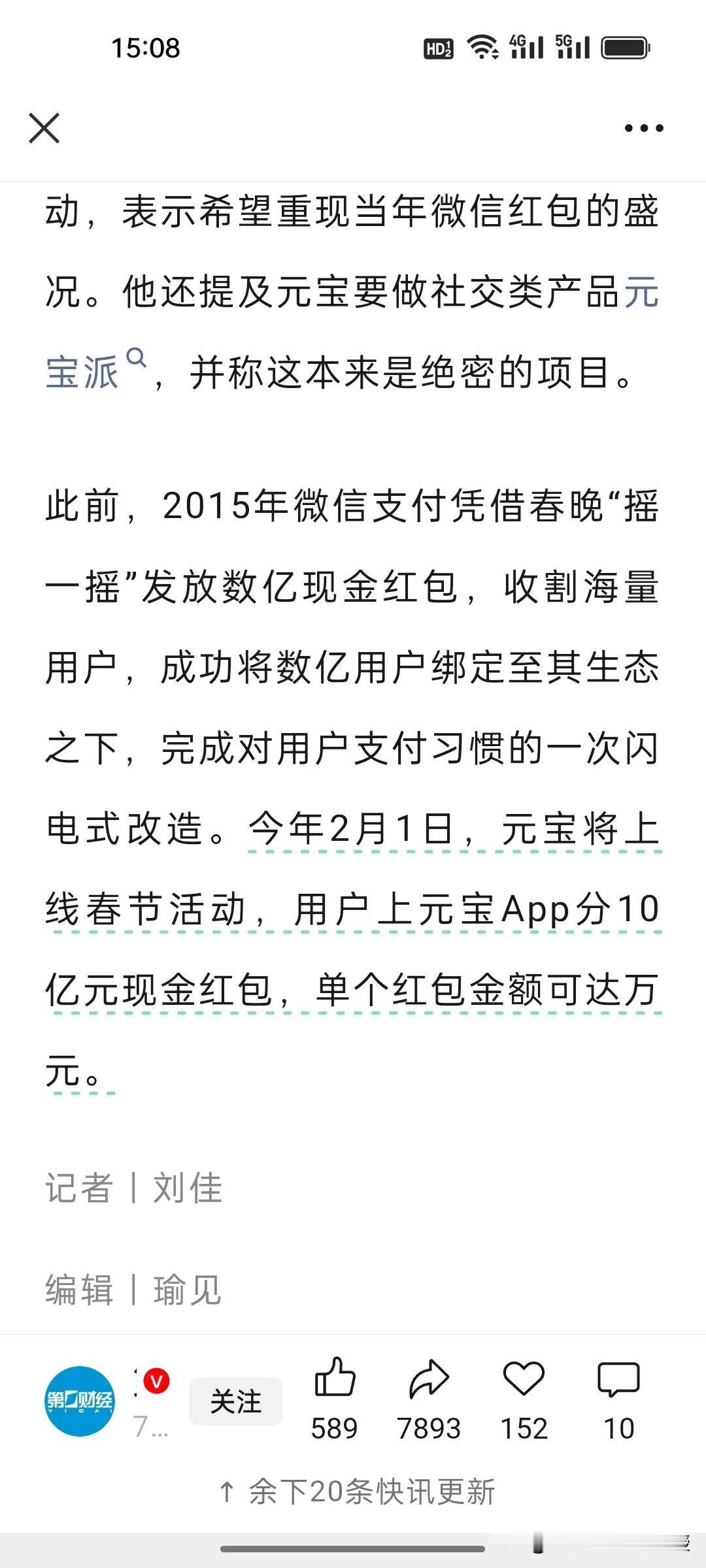 马化腾今天年会上说豪掷重金押注AI,究竟在赌什么? 去年马化腾砸重金布局AI,核心原因藏着三层行业考量: 1. 锚定AI时代核心赛道,弥补腾讯在通用大模型领域的前期短板,抢占技术话语权; 2. 依托微信生态优势,以元宝AI打通社交+AI场景,打造差异化竞争壁垒; 3. 应对豆包、deepseek,通义千问等头部玩家的市场挤压,避免在行业洗牌中掉队。 这一布局对豆包、deepseek,通义千问形成直接冲击:腾讯凭借海量用户基础和生态联动,快速分流市场流量,倒逼三大头部加速技术迭代、升级场景落地能力,AI行业的头部竞争也因此进入更激烈的贴身博弈阶段。 另外,腾讯元宝在昨天就官宣了春节要发10亿现金红包,单个红包最高1万元。腾讯今年提前在AI发力,这场提前布局的豪赌,终将让AI行业的头部厮杀愈演愈烈,看看其他的AI应用跟不跟。