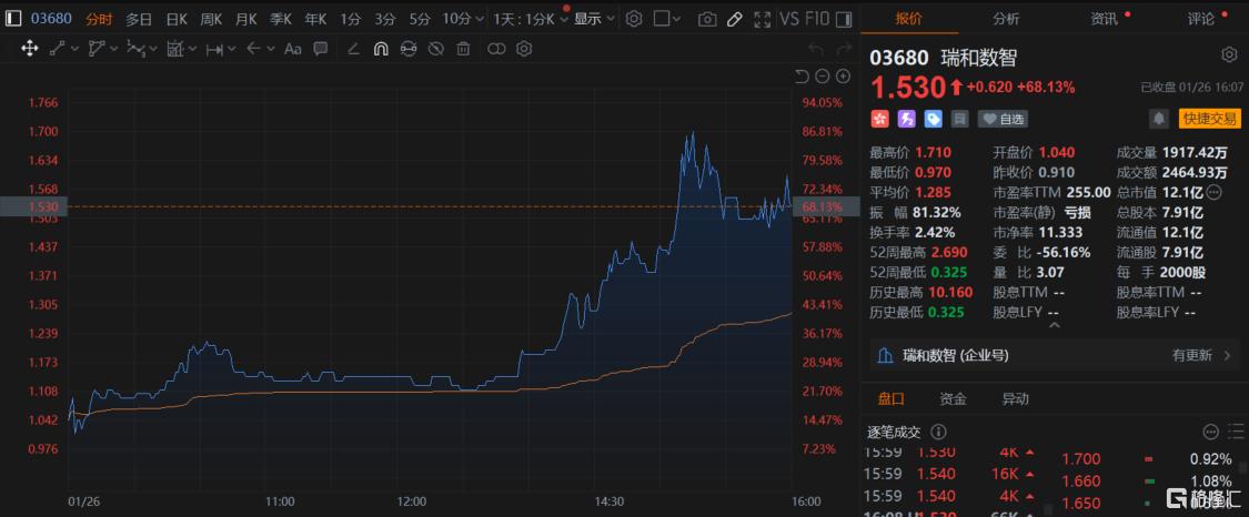 瑞和数智涨超68%,现报1.53港元。消息上,瑞和数智公布,配售1.58亿股新股,占扩大后股本约16.65%;每股配售价0.783港元,集资1.24亿港元。公司拟将所得净款项1.23亿港元中,70%用于偿还集团借款及补充公司一般营运资金,余下30%则用于战略投资,不包括直接或间接投资于加密货币或其他基于加密货币的资产投资。