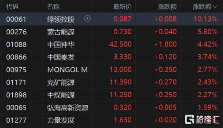 煤炭股大涨,中国神华涨超4%,中国秦发涨超3%,兖矿能源、中煤能源、力量发展等跟涨。