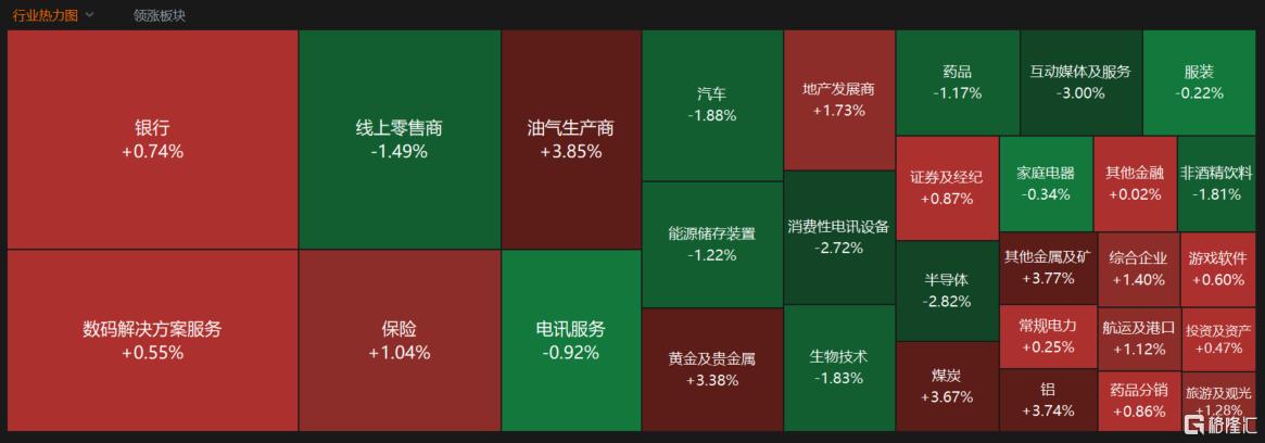 港股三大指数走势有所分化,恒生指数、国企指数呈现震荡行情,恒指小幅上涨0.06%,国企指数跌0.15%,恒生科技指数全天低迷,大幅收跌1.24%。