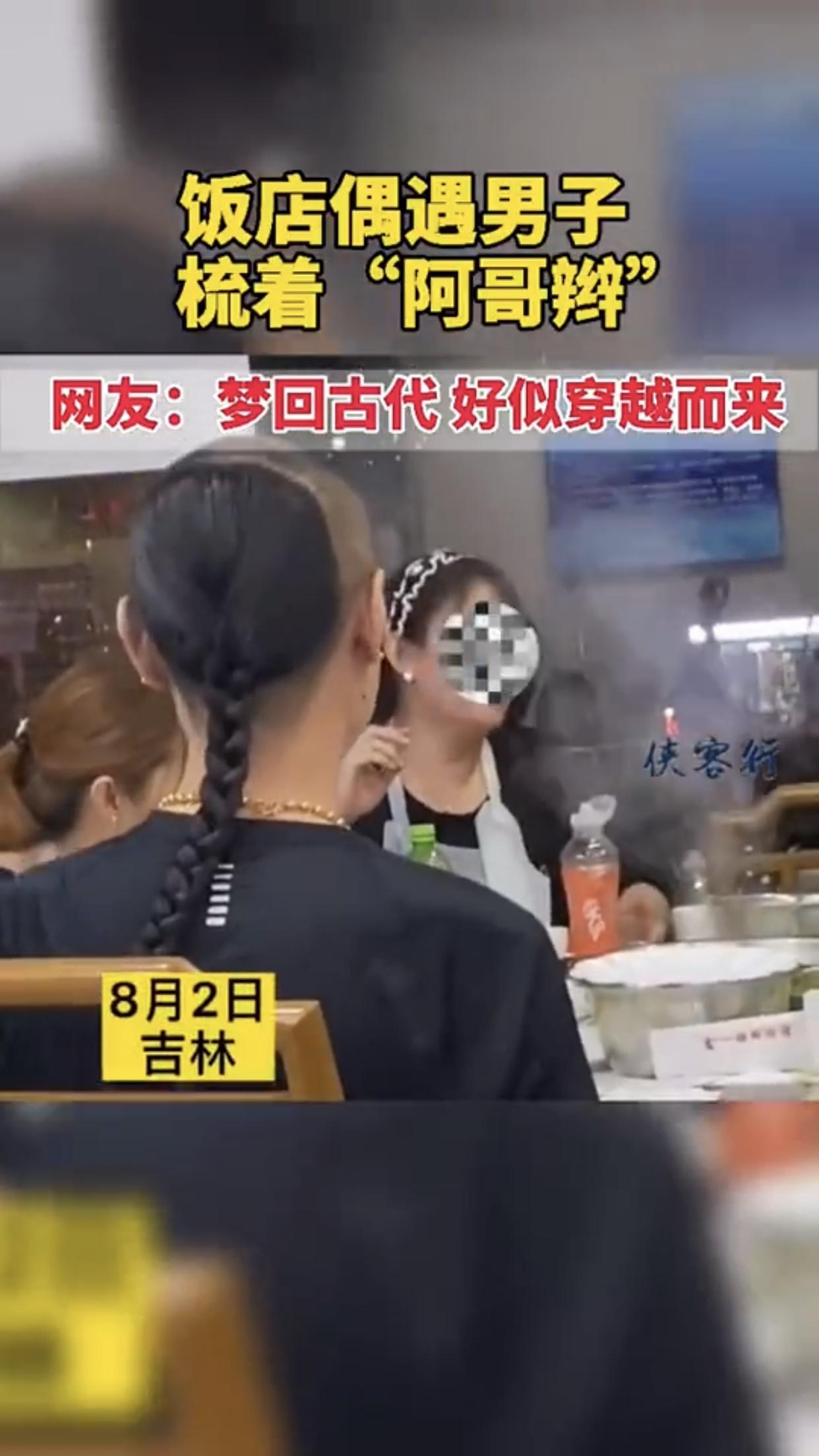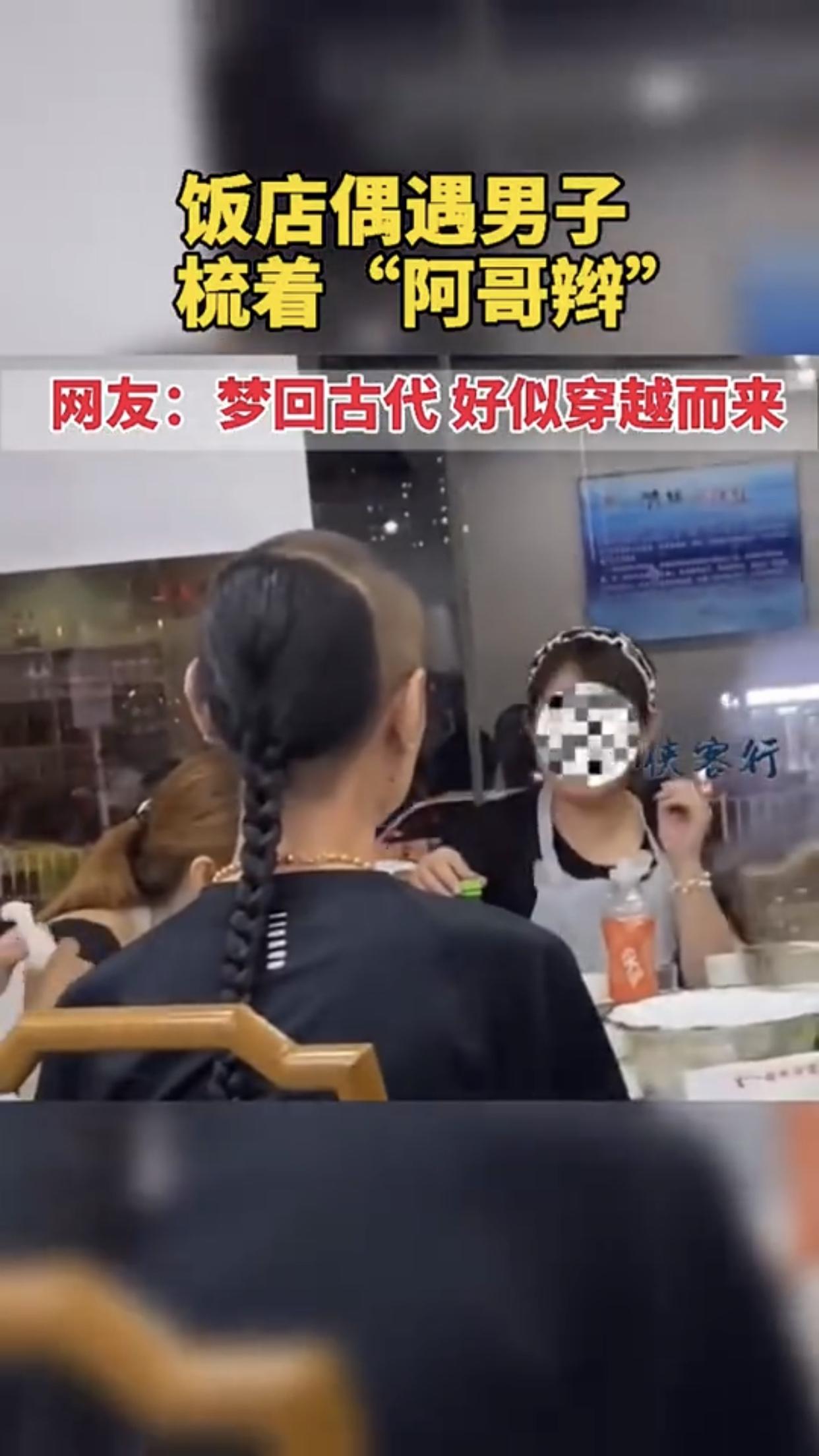 网友去饭店吃饭,偶遇“辫子”哥,也就是大家所说的“满遗”,头上的辫子都没有割,梳