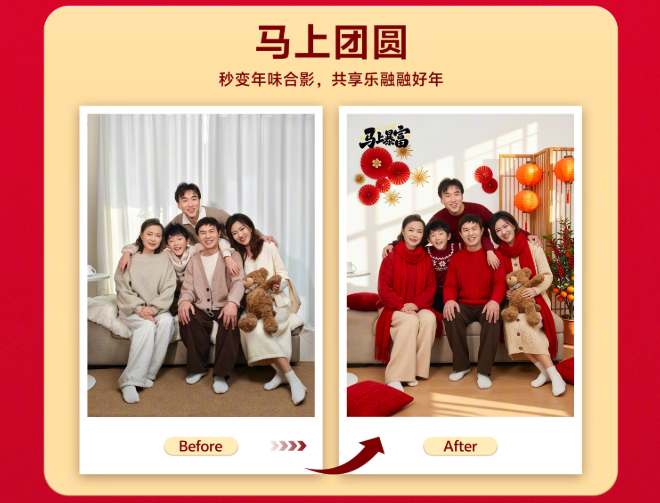 vivo S50系列新春专属AI视效马上添花、马上变身、马上团圆,都是满满的年味