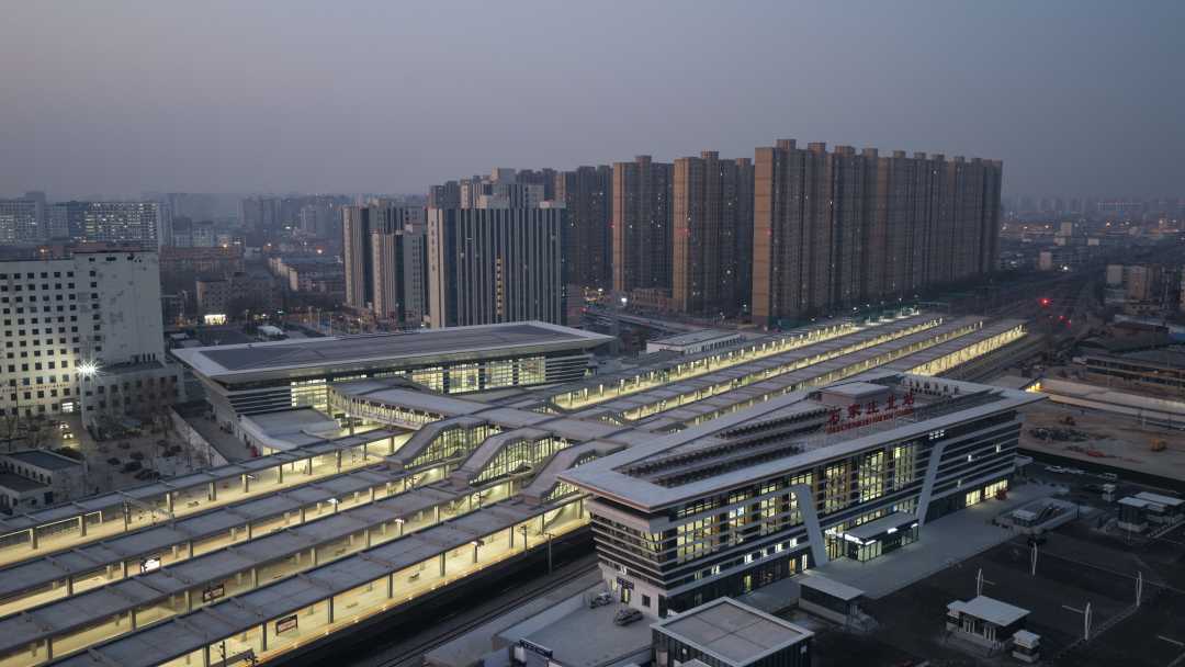 晨曦中的石家庄北站鸟瞰图。郭骁勇摄