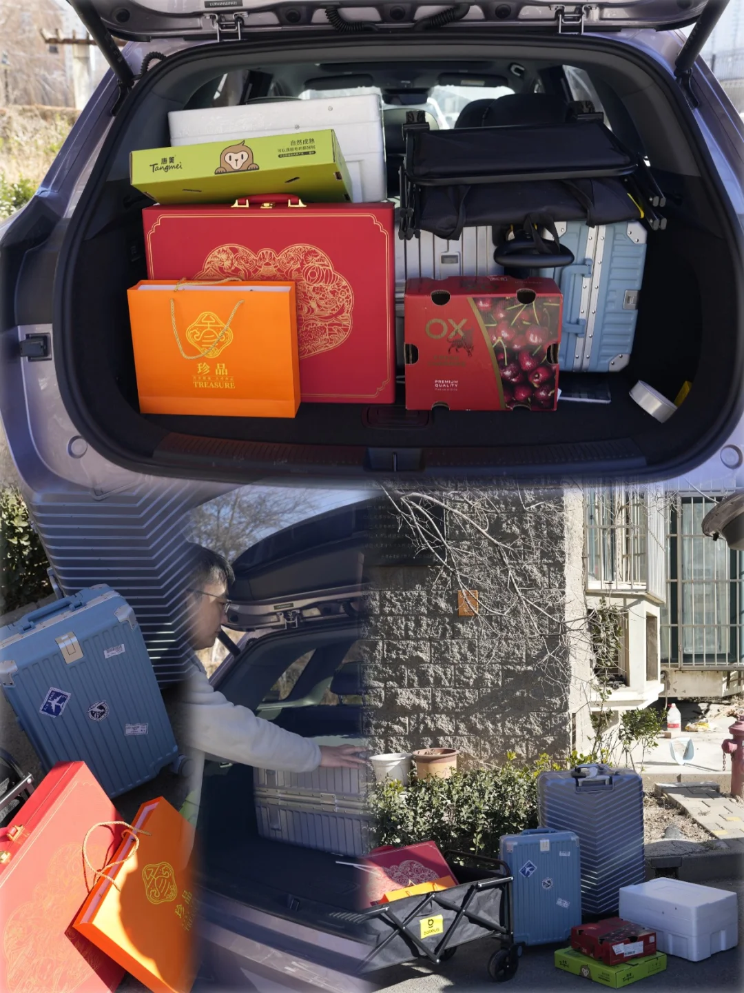 礼盒、年货、行李一股脑放进后备箱,基本不用怎么调整。